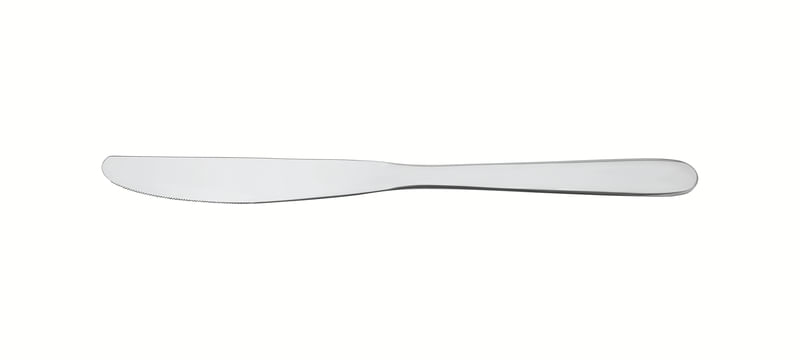 "Faca totalmente temperada, que garante maior durabilidade no fio de corte e maior resistência à corrosão, e por sua característica de temperabilidade, não risca as porcelanas. Totalmente feita de aço inox, mantém suas características originais, preservando a beleza, a higiene e a durabilidade do material. Própria para uso diário combina com qualquer ambiente. Pode ser lavada diariamente na máquina de lavar louças. Com código de barras.