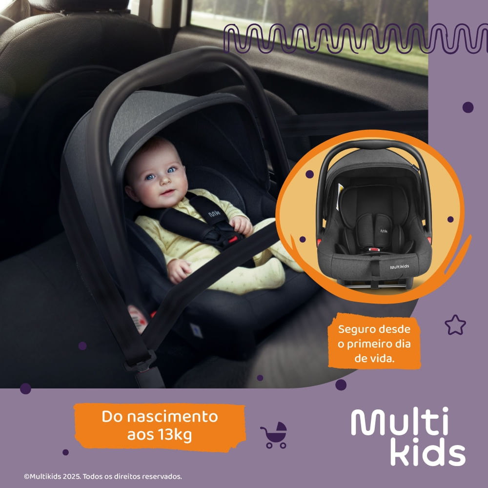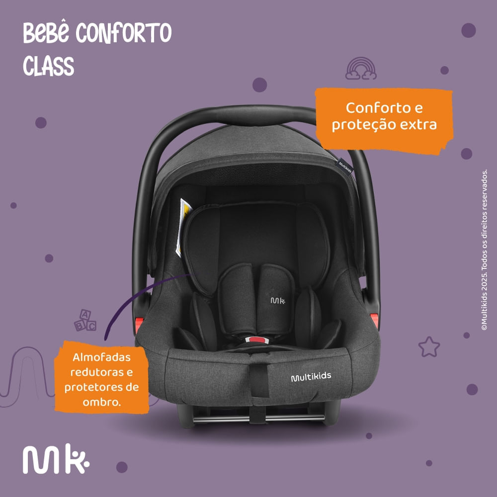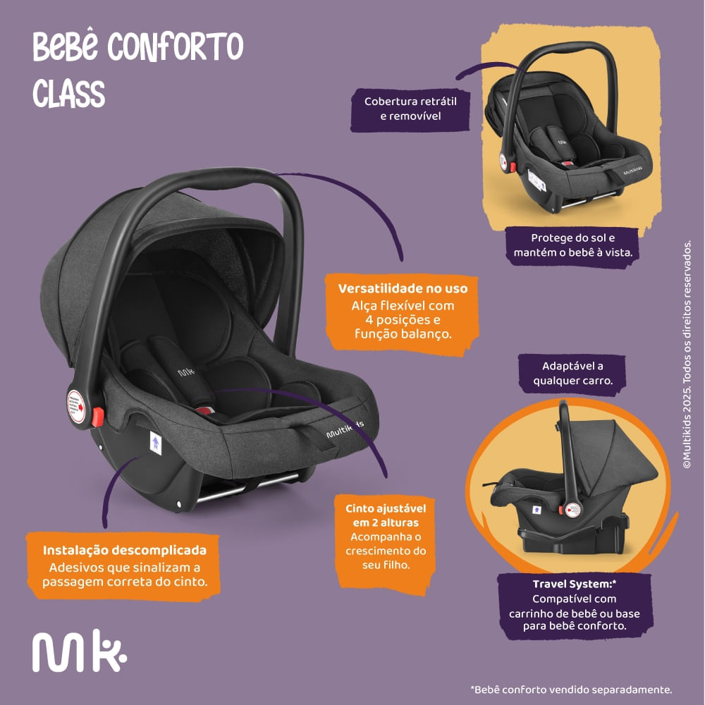 Compatível com os carrinhos Travel System da Multikids Baby, o Class coloca em primeiro lugar o conforto e segurança dos bebês.