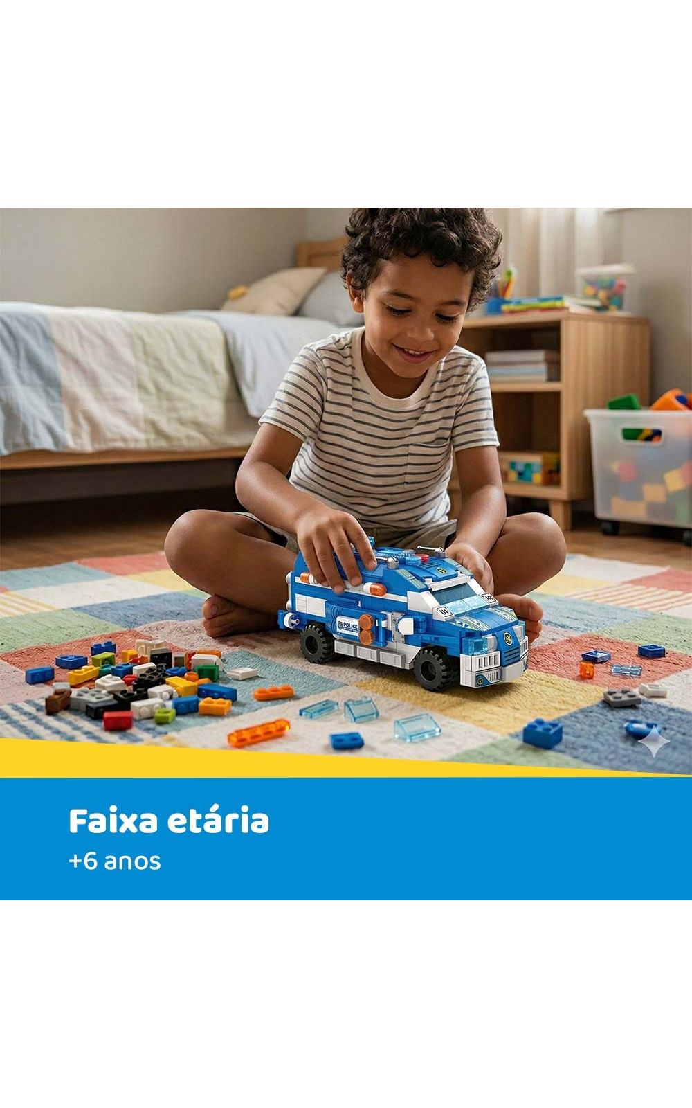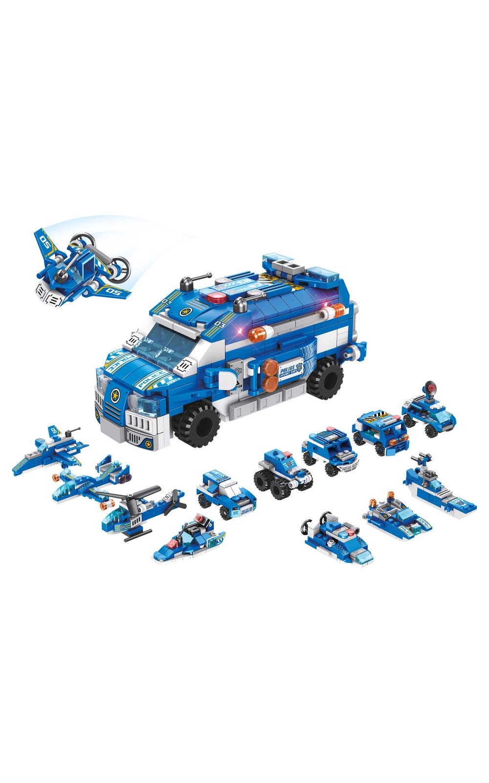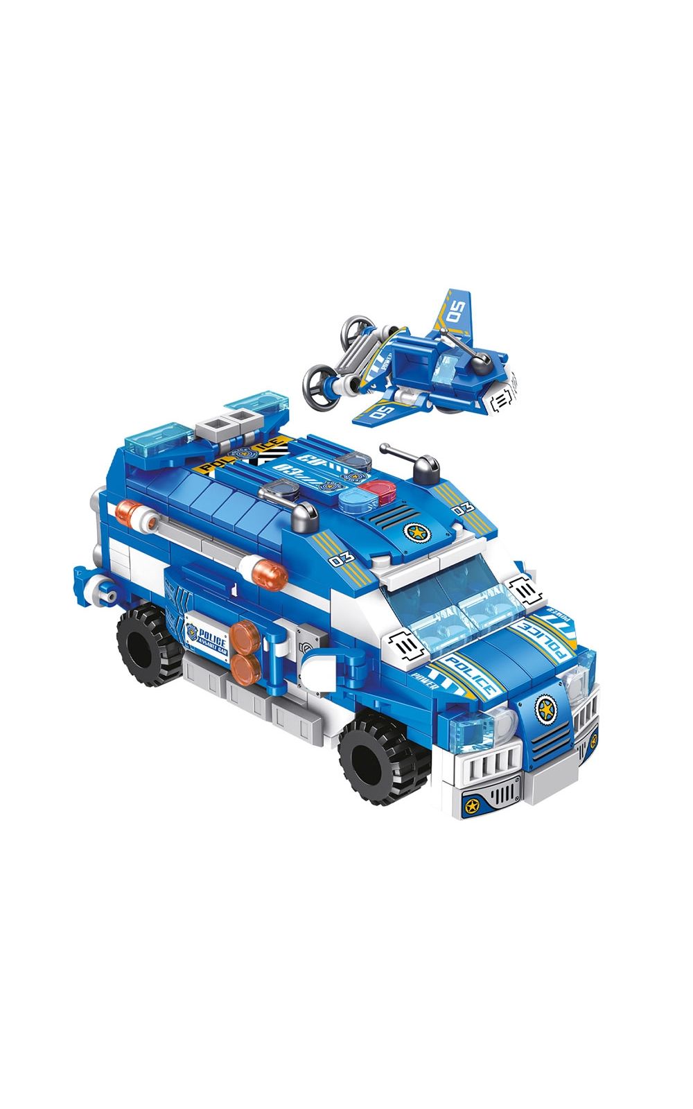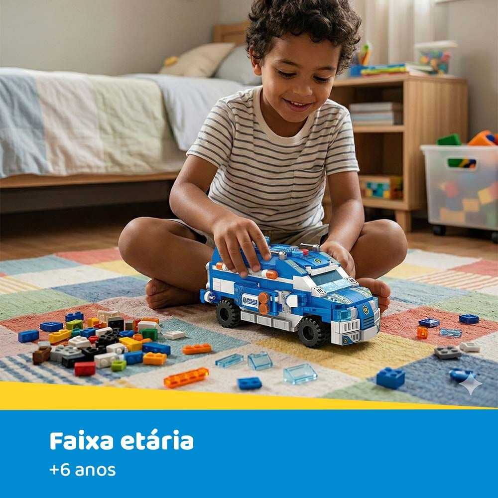 São mais de 500 peças para montar 24 diferentes tipos de veículos de polícia ou montar um incrível e poderoso Carro de Operação Policial!
