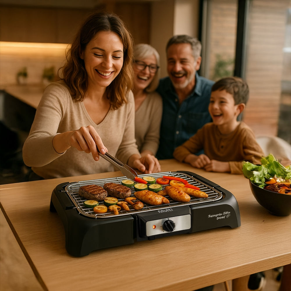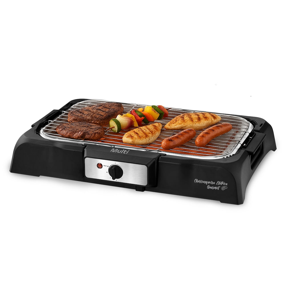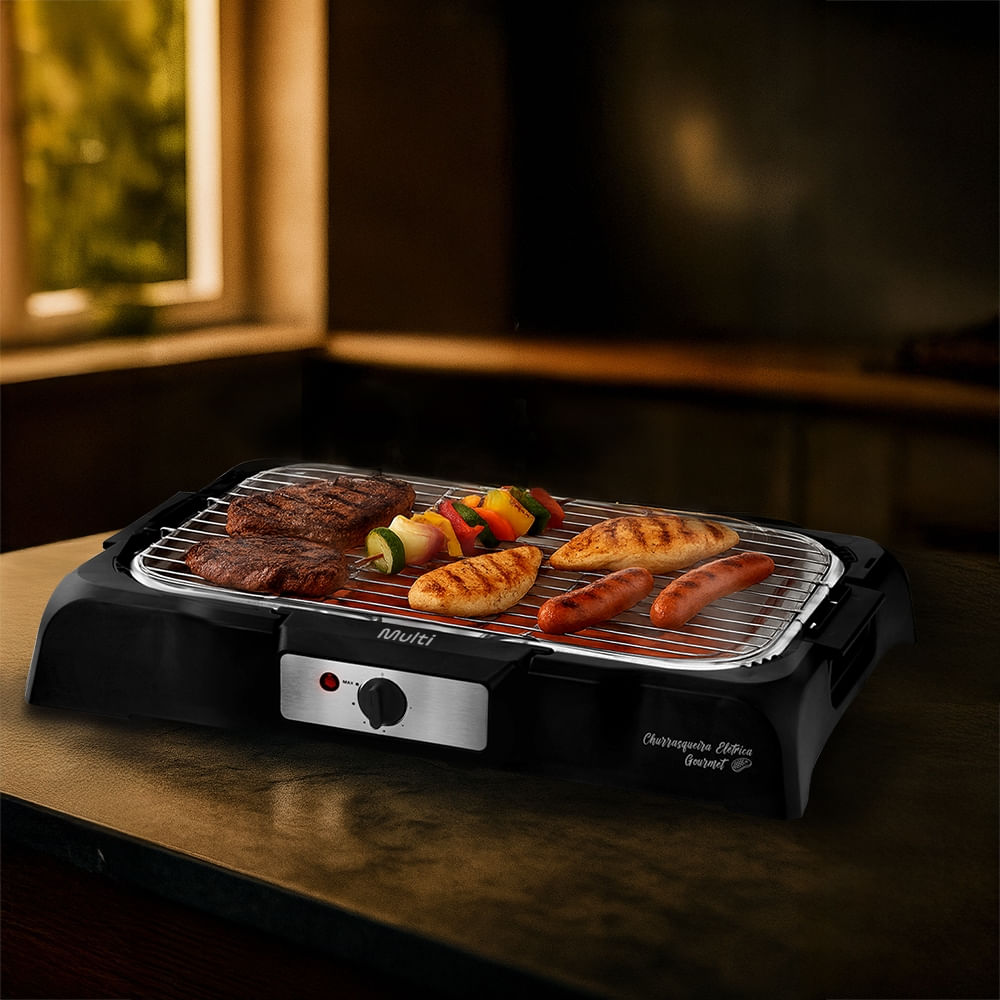Desfrute de refeições saudáveis e saborosas com a Churrasqueira Elétrica da Multi. Com essa churrasqueira elétrica de alto desempenho, você pode preparar carne, frango, espetinhos, linguiça e muito mais, no ponto perfeito e com aquela marquinha de churrasco irresistível.
