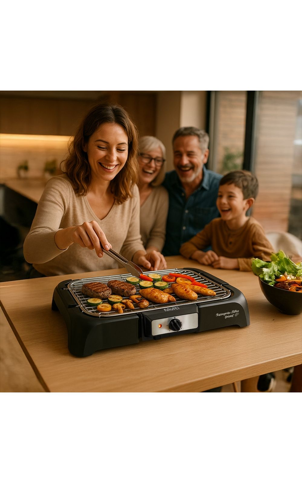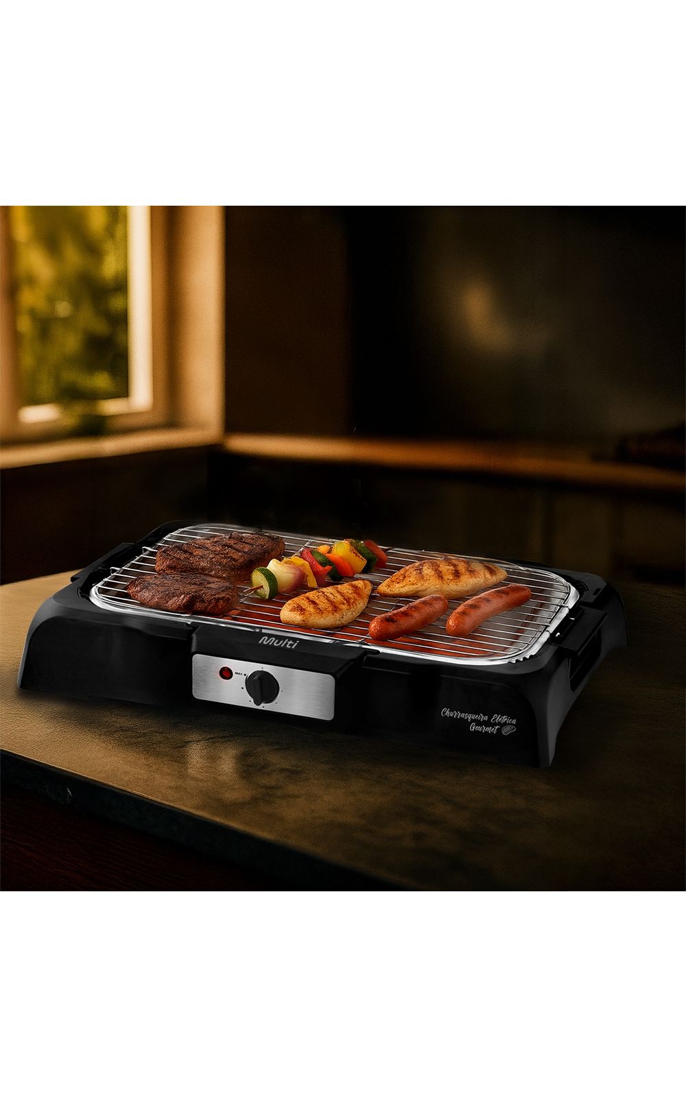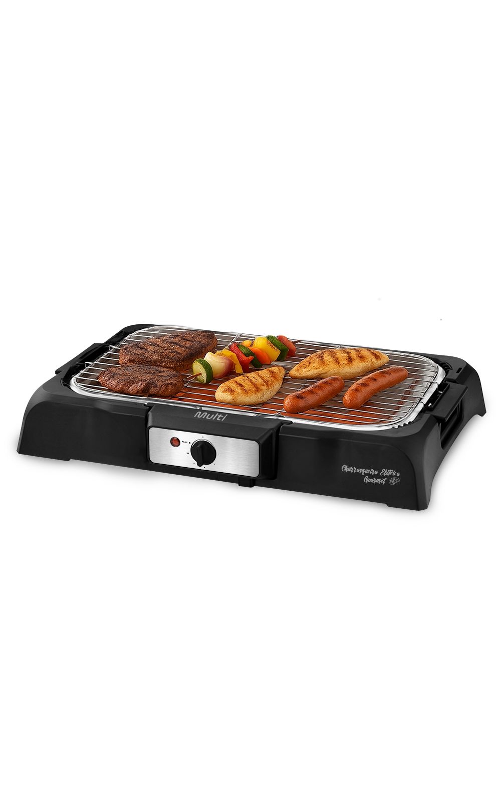 Desfrute de refeições saudáveis e saborosas com a Churrasqueira Elétrica da Multi. Com essa churrasqueira elétrica de alto desempenho, você pode preparar carne, frango, espetinhos, linguiça e muito mais, no ponto perfeito e com aquela marquinha de churrasco irresistível.