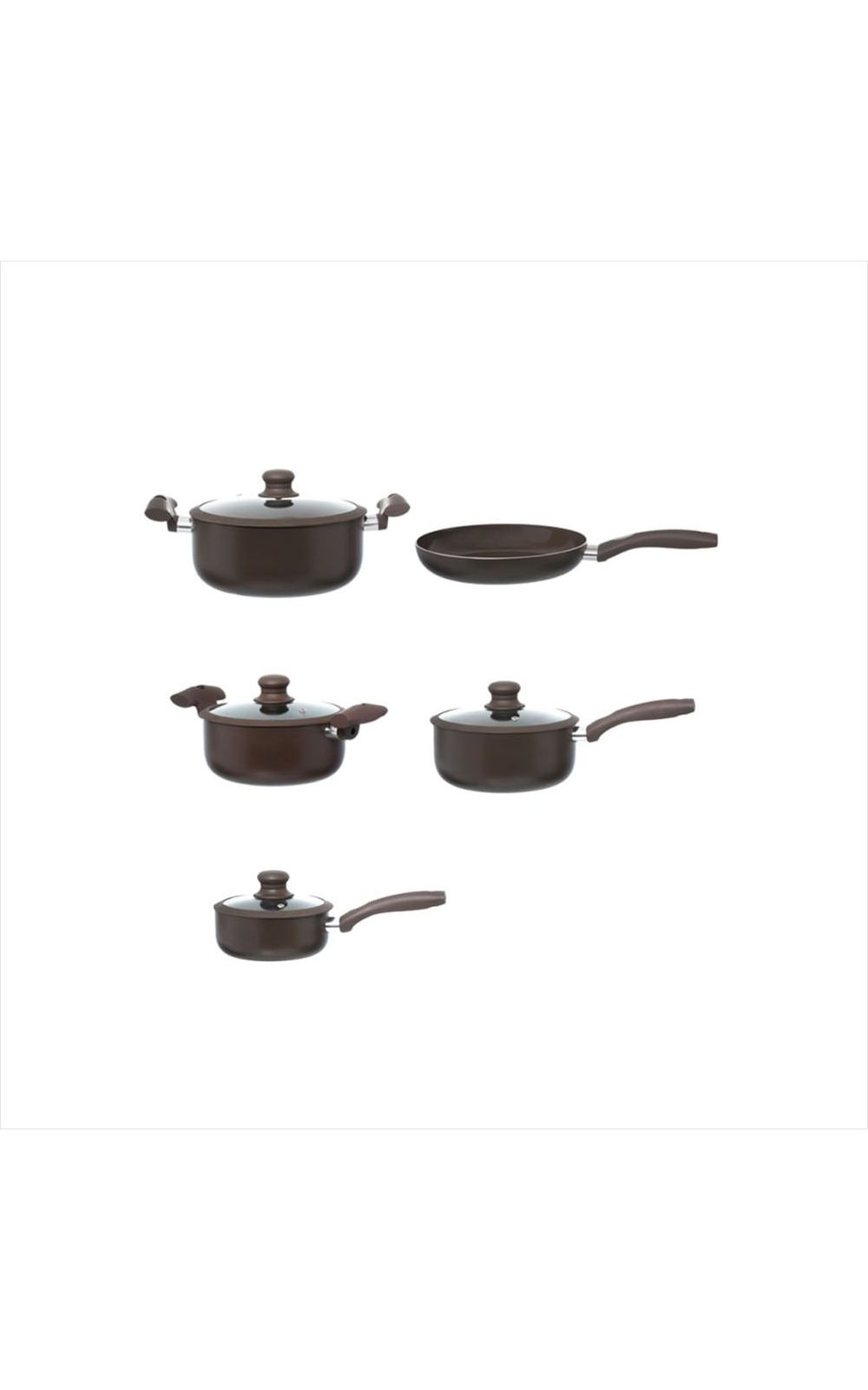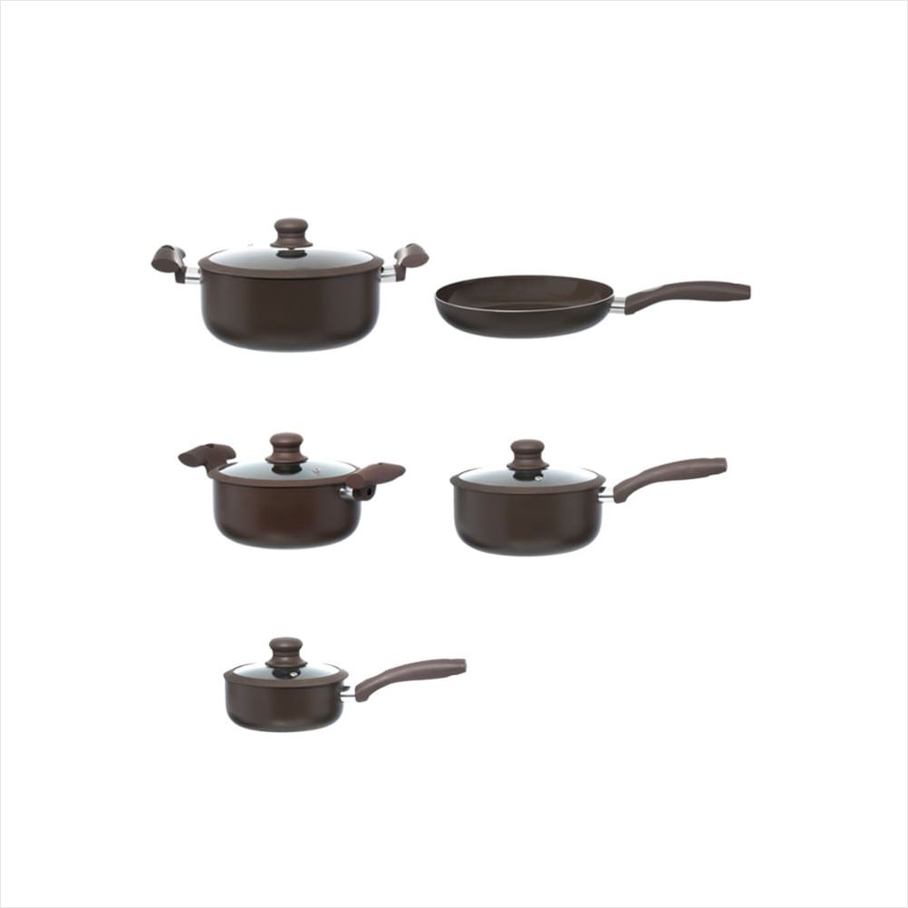 JOGO DE PANELAS CARMIN MARROM 5 PEÇAS Contém: 1 Caçarola: 37 x 24 x 11cm (altura c/ tampa: 16,5cm) / 4,5L 1 Caçarola: 33 x 20 x 9cm (altura c/ tampa: 15cm) / 2,5L 1 Panela: 36,5 x 20 x 9cm (altura c/ tampa: 15cm) / 2,5L 1 Panela: 33 x 16 x 8CM (altura c/ tampa: 13cm) / 1,4L 1 Frigideira: 43 x 24 x 5cm (altura c/ tampa: 7cm) - Espessura: 2,5mm - Dimensões da Embalagem: 55 x 35 x 20cm (CxLxA) - Tipo de Embalagem: CAIXA LITOGRAFADA - Quantidade Master: 2 Peças - Dimensões Master: 57 x 43 x 37cm (CxLxA) - Material: Alumínio, Vidro, Baquelite e Silicone - Cor: Marrom - Marca: HAUSKRAFT - Origem: China - Características: Alumínio. Antiaderente Cerâmico. Tampa com saída de vapor. Cabo Soft Touch. - Instruções de Uso: Nunca deixe o utensílio vazio no fogo. Recomenda-se utilizar utensílio de nylon, silicone ou madeira para mexer os alimentos dentro da caçarola. Cuidar para não queimar os alimentos, isso pode manchar a parte interna da caçarola, porém, não afeta a funcionalidade do produto. - Antes do Uso: Verificar se o produto está em perfeitas condições de uso. - Perigos: Ao manusear produtos quentes, proteja as suas mãos. Cuidado durante o manuseio do produto para evitar acidentes. Evite quedas e pancadas para não danificar o produto. - Cuidados: Antes de utilizar, remova as etiquetas e lave com esponja macia, utilizando sabão neutro. Enxugue bem com um pano macio, e já estará pronto para usar. Para manter a conservação, basta lavar com água, detergente e sabão neutro, utilizando uma esponja macia. Para remover alimentos grudados ou queimados, deixe de molho com água morna por alguns minutos. Lave em seguida. Enxugue imediatamente após a lavagem para prevenir manchas. - Advertência/Atenção: Manter fora do alcance das crianças, - Dicas de segurança: Nunca deixe alimentos cozinhando sem acompanhamento. Utilize luvas ao manusear utensílios quentes. Este produto não pode sofrer modificações e todas as peças só podem ser substituídas por peças originais. - Indicação: Apto ao fogão convencional, fogão de indução e Geladeira. Não apto ao forno convencional, forno elétrico, micro-ondas, freezer e lava-louças. - Sac Fornecedor: Sac: 0800 607 1322 Garantia: Em condições normais de uso, este produto tem garantia de 90 dias contra defeitos de material e fabricação, mediante apresentação da nota fiscal de compra. Má conservação, manuseio inadequado, quedas ou quaisquer outras avarias produzidas pelo uso incorreto, a garantia oferecida perde a validade.