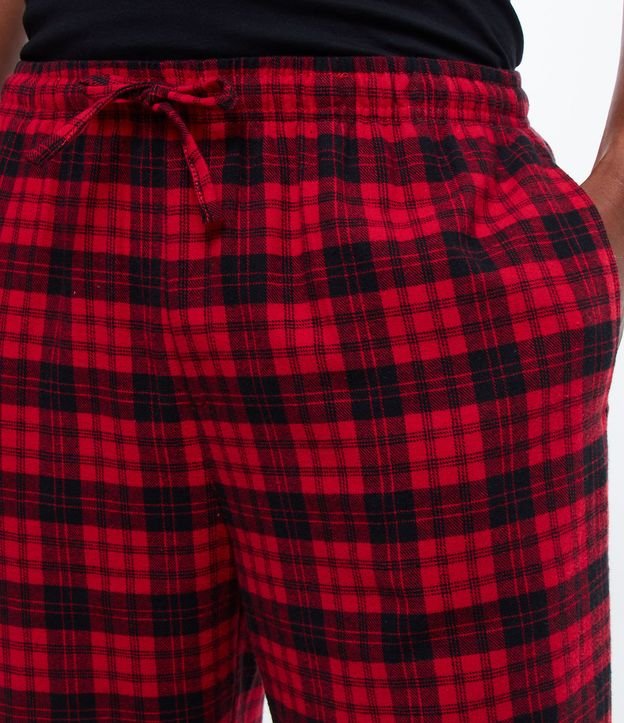 Calça de pijama, confeccionada em flanela xadrez e com cós elástico.