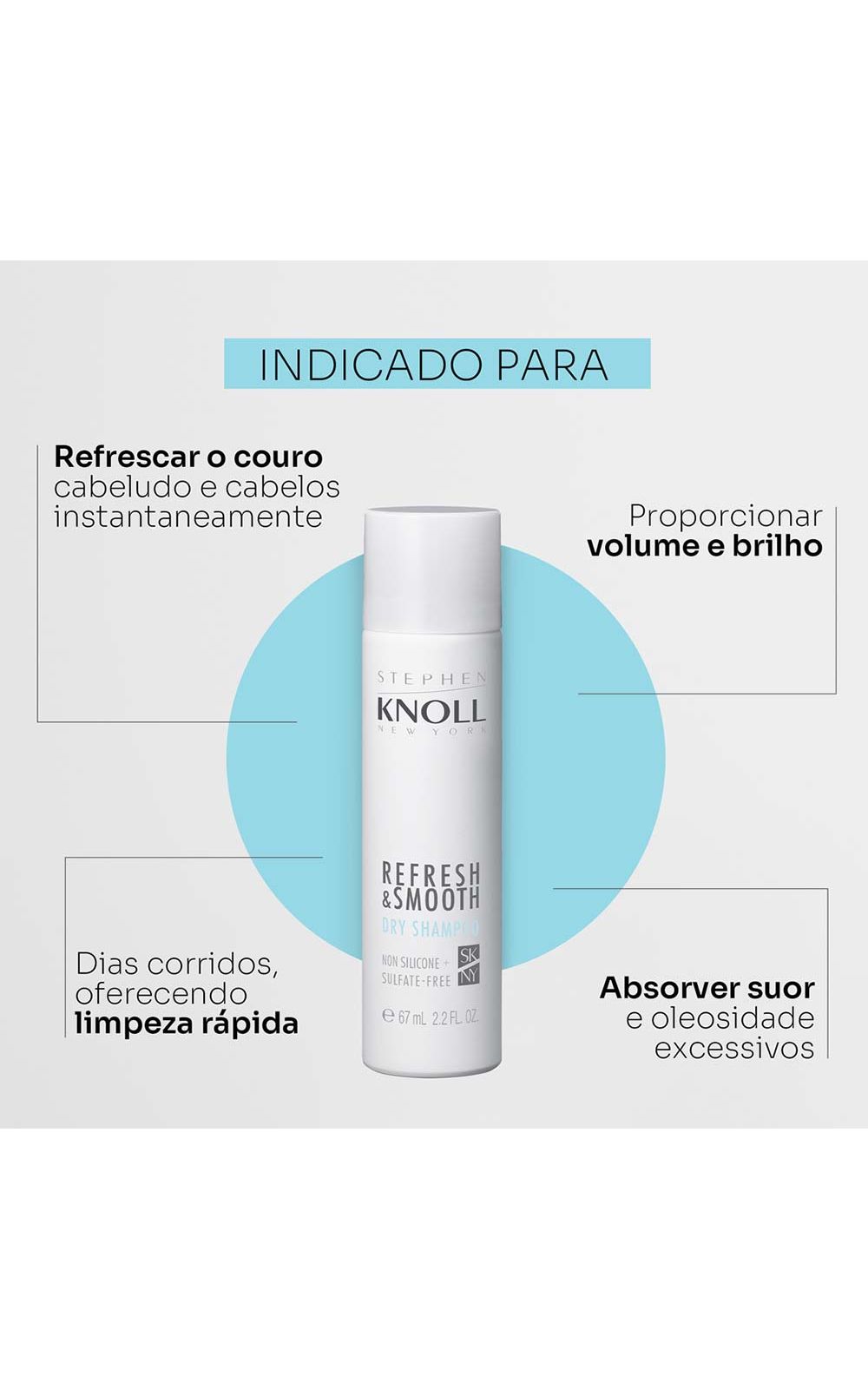 O Refresh & Smooth Dry Shampoo 3-em-1 da Stephen Knoll é perfeito para todos os tipos de cabelos e texturas, sejam lisos, ondulados, cacheados ou crespos, finos, médios ou grossos. Sua fórmula 100% livre de silicones e sulfatos proporciona um cuidado gentil e eficaz, respeitando a saúde capilar.