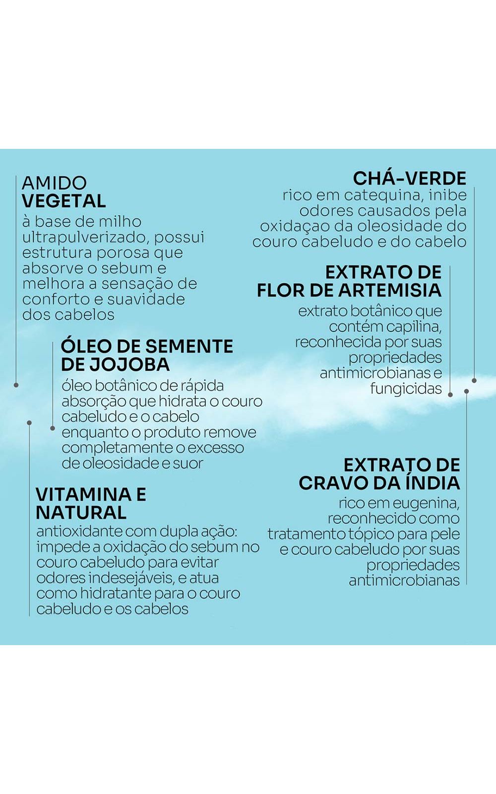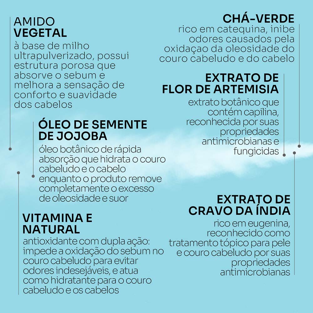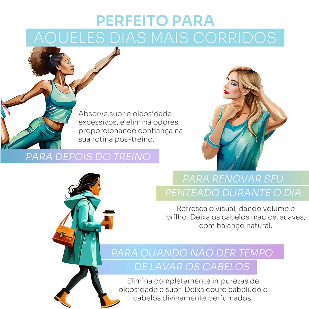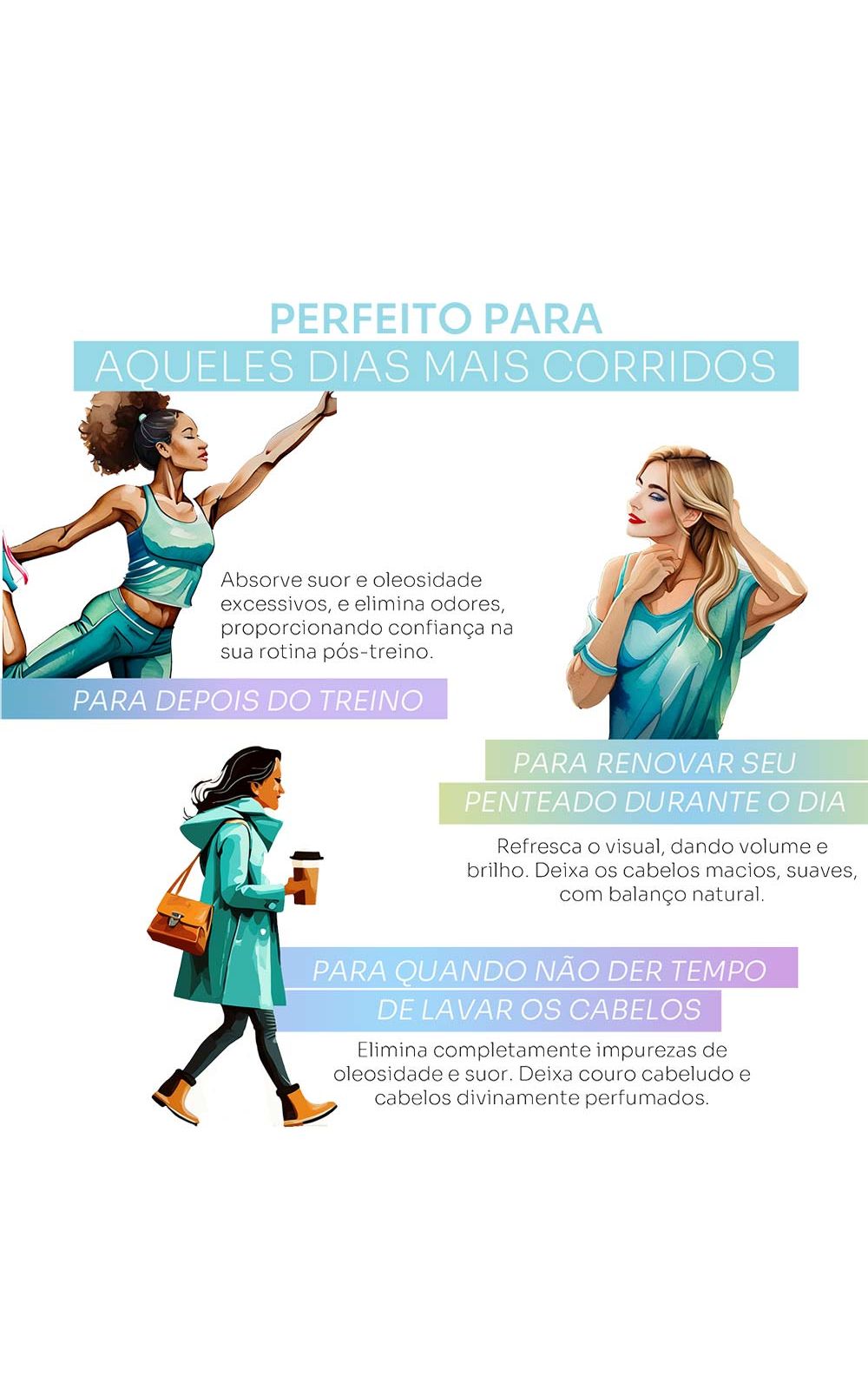 - Sua tecnologia de limpeza exclusiva elimina oleosidade, suor e odores, garantindo uma sensação de cabelos recém-lavados, sem acúmulo de resíduos;