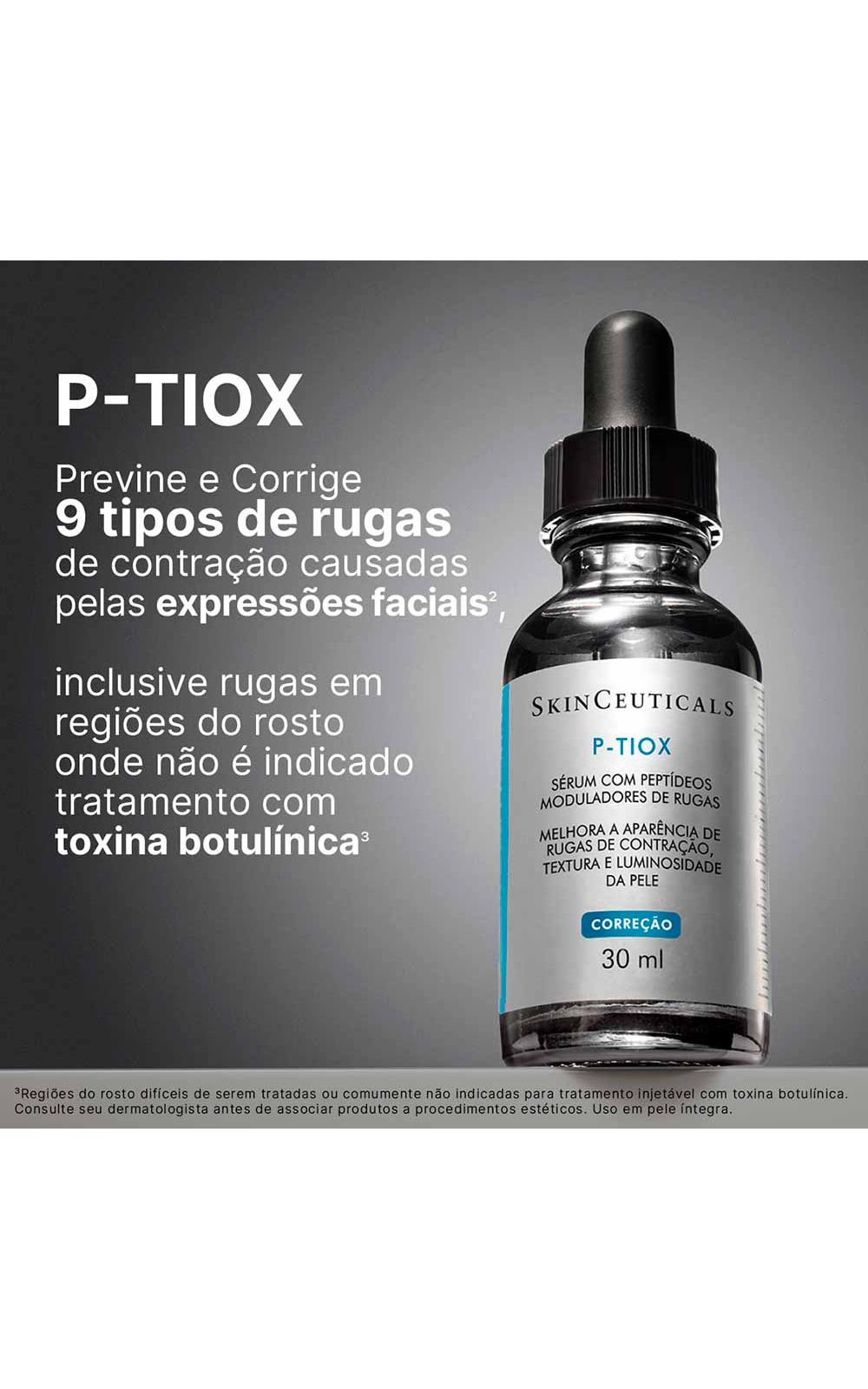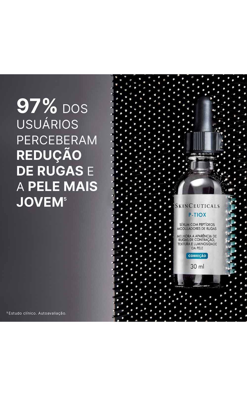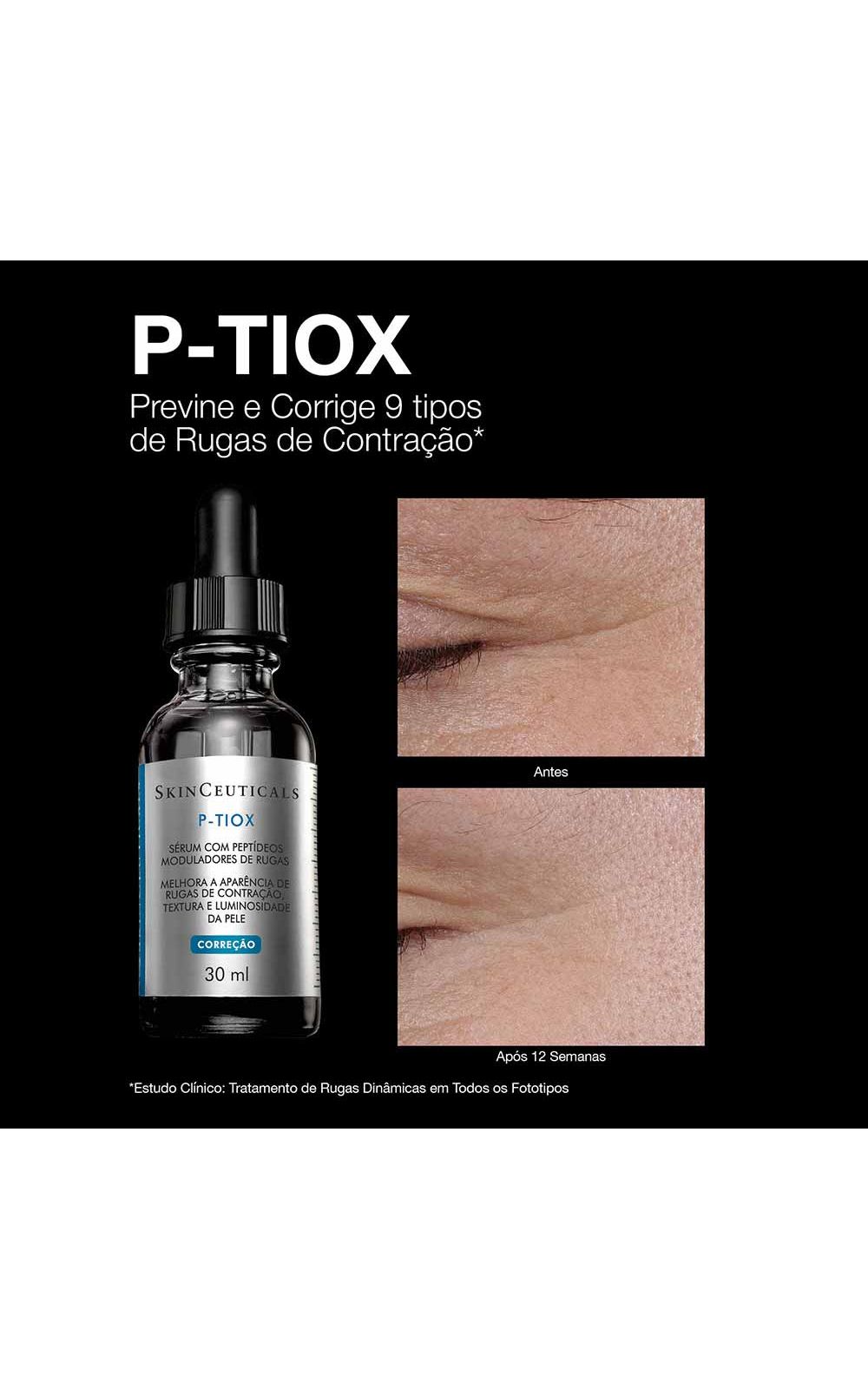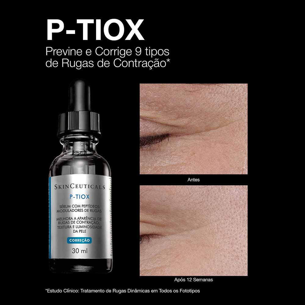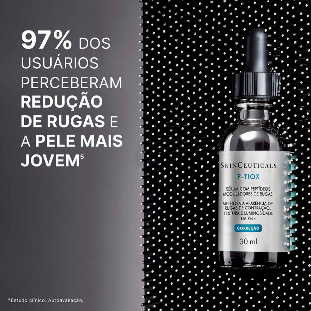 O Sérum Facial Skinceuticals - P-Tiox é o 1° sérum com neuropeptídeos para tratar Rugas de Contração e Textura da Pele¹, uma NOVA TECNOLOGIA ANTI-IDADE¹ inspirada nos efeitos da Toxina Botulínica.