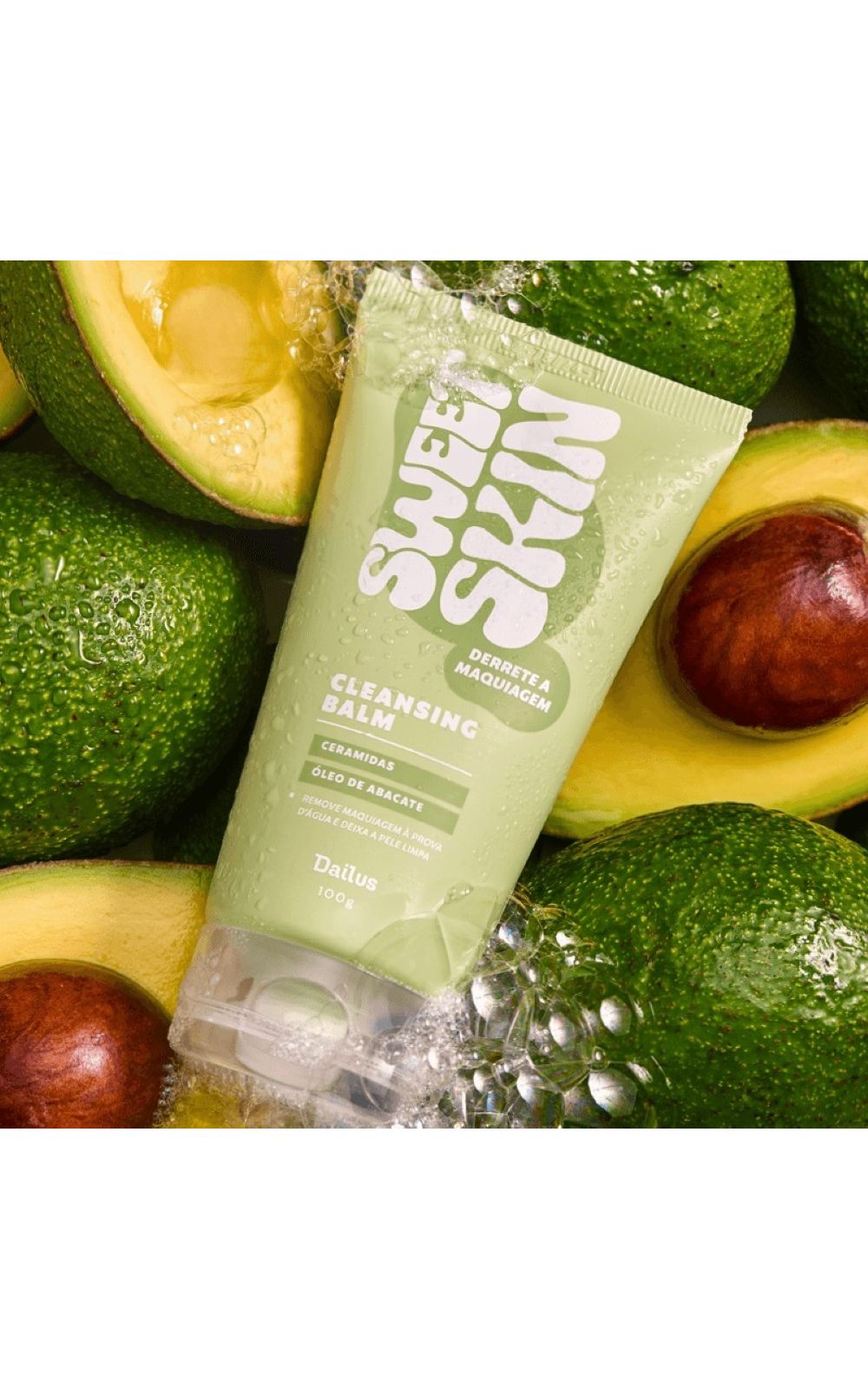 A fórmula possui ceramidas que reparam a barreira cutânea e aumentam a hidratação da pele. O óleo de abacate, também presente na composição, tem ação regenerativa e hidratante, deixando aquele sensorial incrivelmente macios após a limpeza!