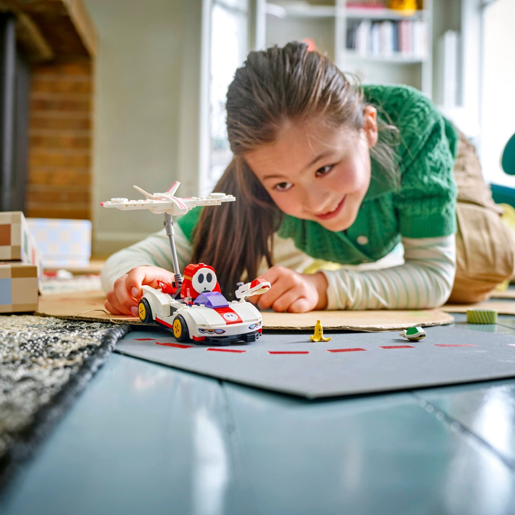 Cod LEGO: 72045Descrição Comercial: Dirija, deslize, plane, lance projéteis e muito mais com este conjunto de construção LEGO® Super Mario: Mario Kart para crianças (72045). Uma divertida ideia de presente de aniversário para meninos, meninas e qualquer jogador a partir de 7 anos, o conjunto apresenta uma figura do Shy Guy e uma recriação de um P-Wing com peças para construir, com função de lançamento de projéteis, pneus padrão e um planador de avião destacável. Há também um elemento Banana para arremessar nos karts rivais!Deslize o assento do motorista para frente para encaixar a figura de brinquedo LEGO® Mario, LEGO® Luigi ou LEGO® Peach (dos conjuntos 71439, 71440, 71441 ou 72043 vendidos separadamente) no kart para jogo interativo, acionando efeitos sonoros e visuais do Mario Kart para iniciar a corrida, derrapar, planar e muito mais.Encontre as instruções de construção para este conjunto Nintendo® LEGO na caixa ou no aplicativo LEGO Super Mario e fique de olho em outros brinquedos de construção LEGO Super Mario: Mario Kart (vendidos separadamente) para outros personagens e veículos para correr e lutar. Este conjunto contém 249 peças.LEGO® Super Mario: Conjunto de construção de brinquedo Mario Kart para crianças Junte-se ao Shy Guy em seu P-wing construído com peças para dirigir, derrapar, planar e lançar projéteis.Conjunto de brinquedos de personagens Nintendo® O conjunto inclui uma figura Shy Guy para dramatização, além de um elemento Banana com decoração facialKart P-Wing Possui função de lançamento de projéteis, ação de drift, planador destacável e assento deslizante para o motorista, permitindo que o Shy Guy ou uma figura interativa (não incluída) caibam no cockpit.Jogo interativo Dirija o P-Wing com LEGO® Mario, LEGO® Luigi ou LEGO® Peach (figuras não incluídas) para ativar os efeitos sonoros e visuais do Mario Kart para iniciar a corrida, derrapar, planar e muito mais.Ideia de presente de aniversário para crianças Dê este conjunto LEGO® Super Mario de presente para meninos, meninas e jogadores com 7 anos ou mais; um dos conjuntos 71439, 71440, 71441 ou 72043 (vendido separadamente) é necessário para jogo interativoConjuntos colecionáveis Nintendo® LEGO® Explore a linha LEGO® Super Mario: Mario Kart (conjuntos vendidos separadamente) e encontre outros veículos e personagens para construir para competir e criar históriasInspire a brincadeira imaginativa os brinquedos de construção para crianças LEGO® Super Mario são projetados para brincadeiras individuais ou em grupo, oferecendo dramatização, coleta de moedas digitais e desafios divertidos por meio de expansão e reconstrução.Dimensões O kart P-Wing neste conjunto de 249 peças mede mais de 4 cm de altura, 14 cm de comprimento e 7 cm de larguraIdade: 4 anos ou maisIdade Mínima: 7Interesses: CarrosLimite de venda: 2Número de peças: 249Peças: 100 - 399Recomendações (pdp): ATENÇÃO! NÃO RECOMENDÁVEL PARA CRIANÇAS MENORES DE 3 (TRÊS) ANOS POR CONTER PARTE(S) PEQUENA(S) QUE PODE(M) SER ENGOLIDA(S) OU ASPIRADA(S). NÃO APONTAR PARA OS OLHOS E PARAA FACE. NÃO UTILIZAR PROJÉTEIS DIFERENTES DOS PROVIDOS E DOS INDICADOS PELO FABRICANTE DO BRINQUEDO. Nº de Registro: 005830/2021Vídeos: https://www.lego.com/cdn/cs/set/assets/blt3d492f28f1b9be1a/72045_360_SoMe.mp4#t=0.01naorecomendado_3anos: SimqtdVendasPorCliente: 2