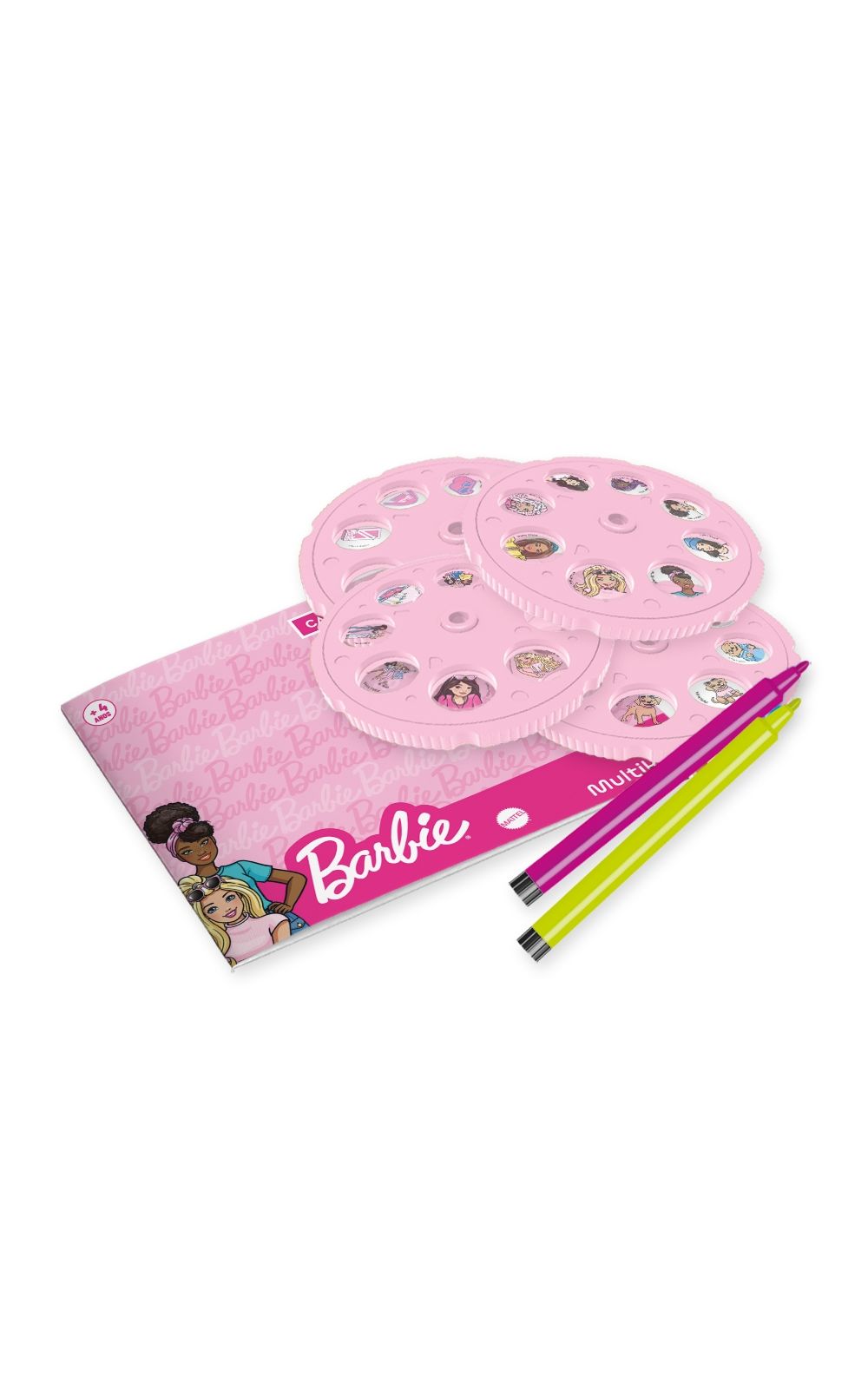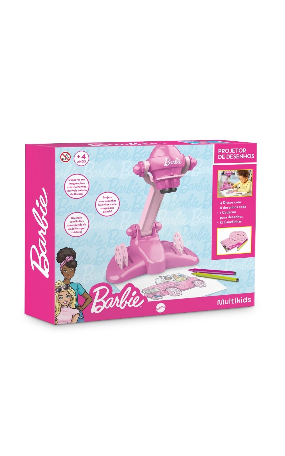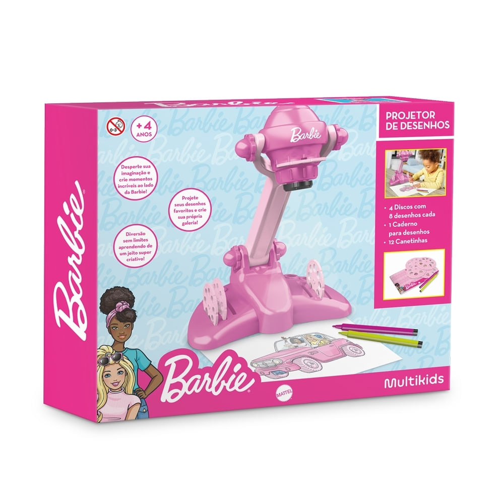 Com 4 discos e 32 desenhos no total, ele permite que as crianças projetem imagens da Barbie, estimulando a imaginação e o desenvolvimento artístico.