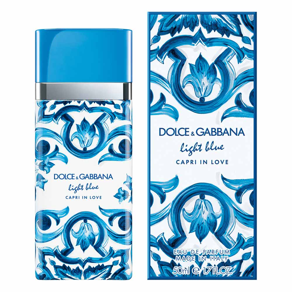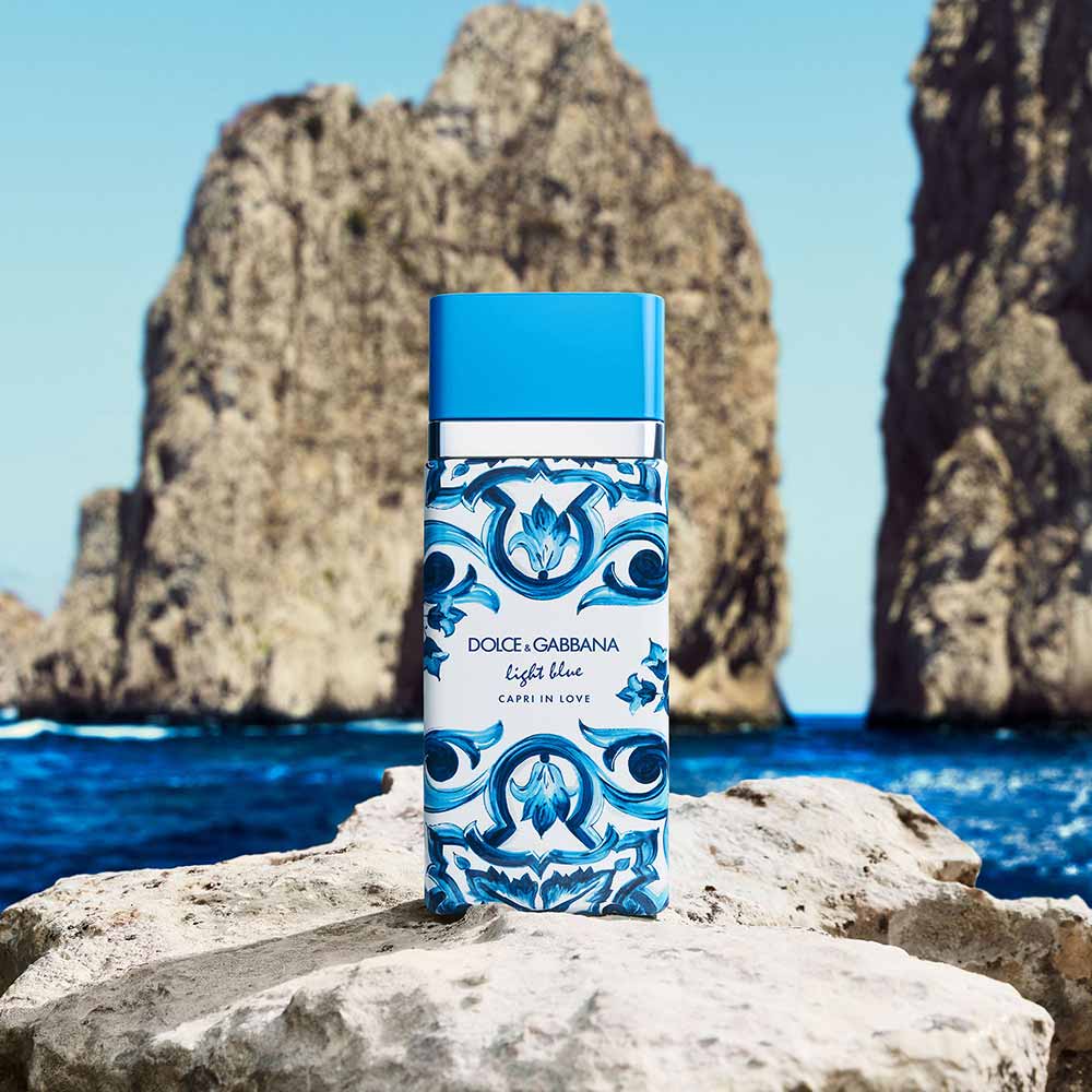 Hoje, a história continua com Light Blue Capri in Love Eau de Parfum, para ela e para ele, um sonho mediterrâneo para experienciar todos os dias. Light Blue Capri In Love Eau de Parfum, criado por Emilie Coppermann, é um convite para descobrir as paisagens de tirar o folego de capri. O chá de jasmim e a maçã crocante se combinam com a calidez da flor de longoza para uma fragrância que evoca a beleza natural da ilha.
