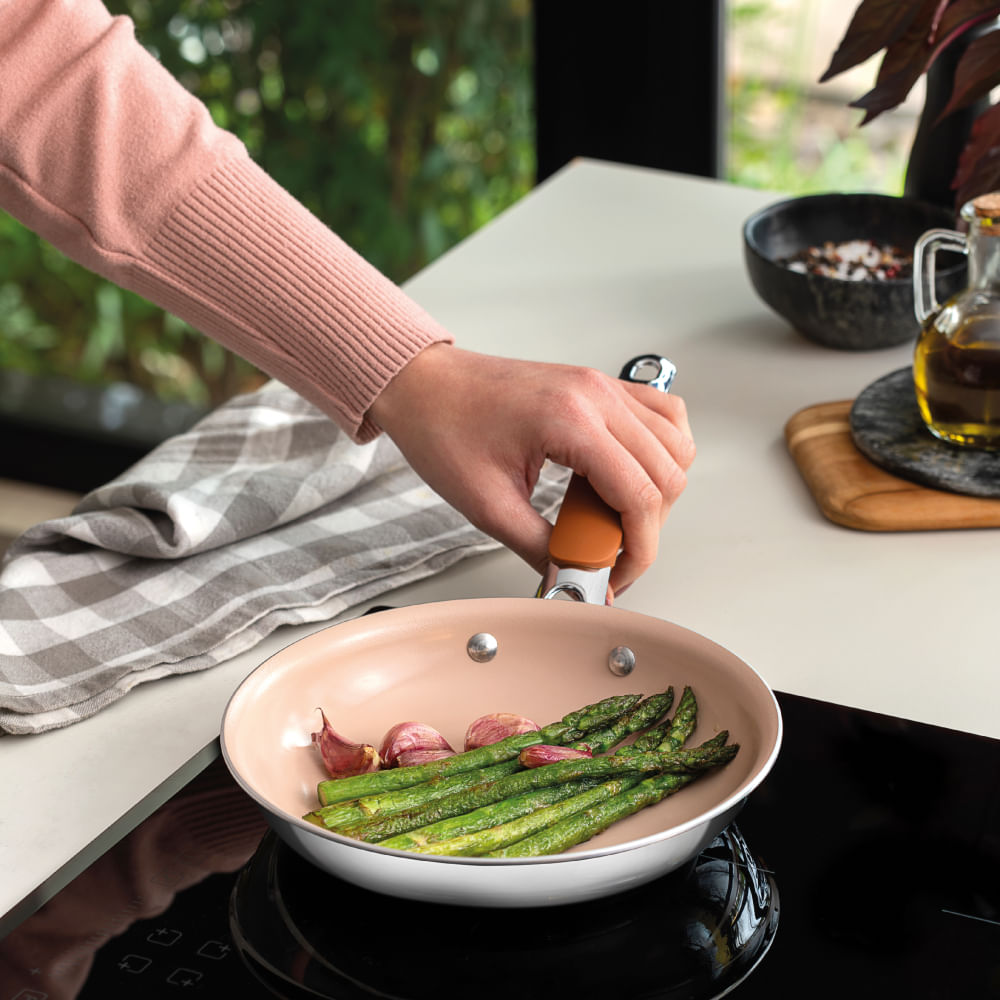 A Frigideira Tramontina Romagna em Aço Inox e Alumínio com Revestimento Interno Cerâmico Marfim de 20 cm e 1 L é a escolha ideal para quem busca praticidade e um cozimento mais saudável. Otimize suas experiências culinárias com design e funcionalidade para o dia a dia.