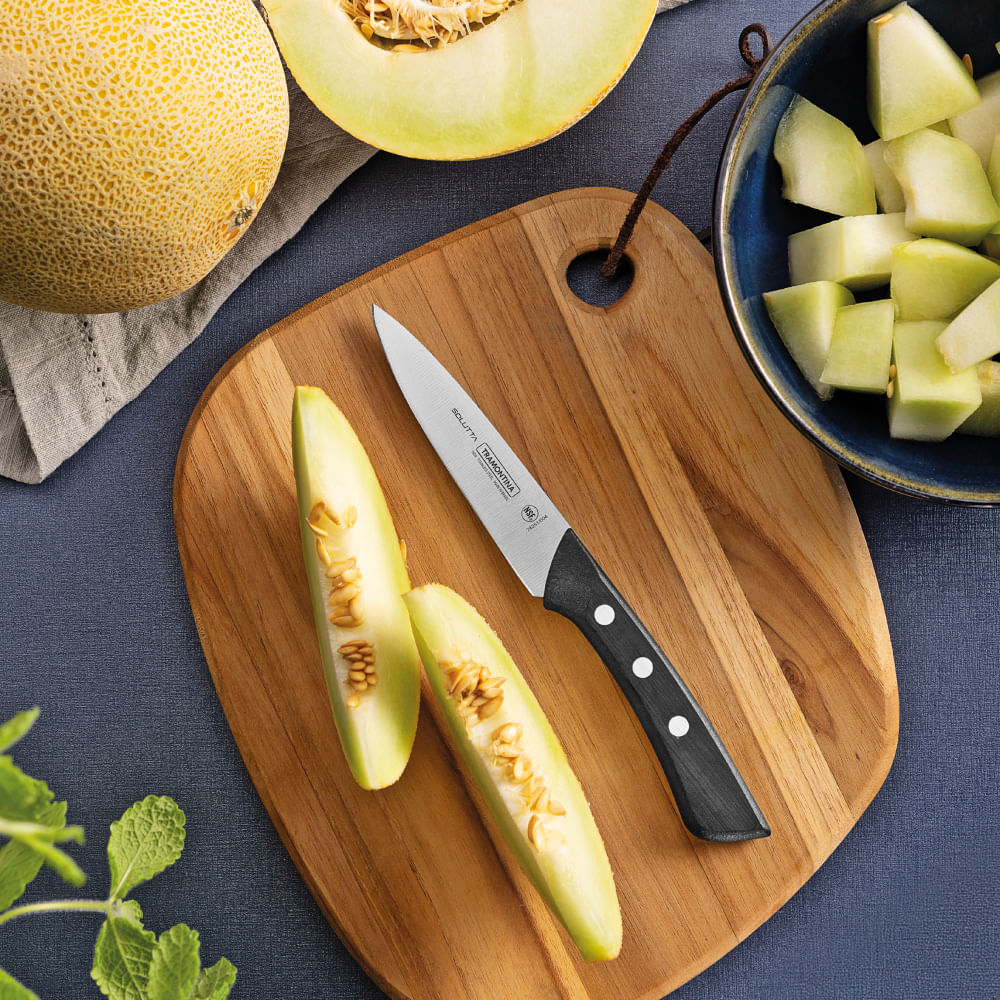 A Faca para Legumes e Frutas Tramontina Solutta é essencial para otimizar suas tarefas na cozinha. Oferece precisão e eficiência para cortes delicados e descasques minuciosos em legumes e frutas, tornando o preparo mais prático e seguro.
