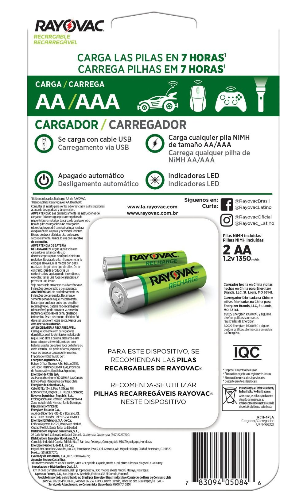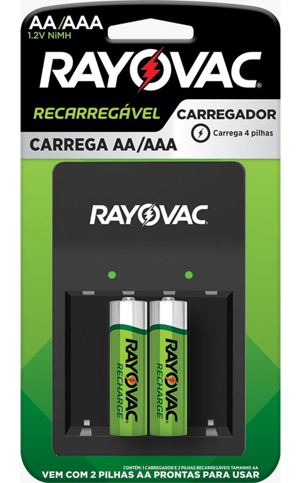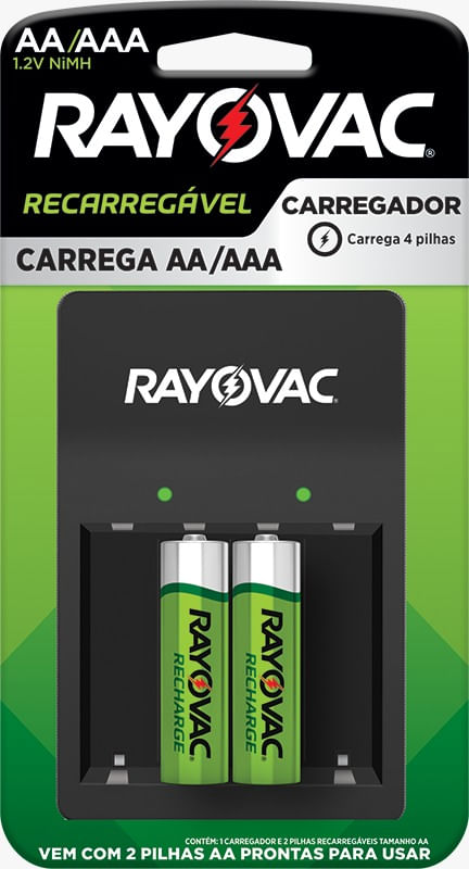 O Carregador de Pilhas AA/AAA USB SM-4 da Rayovac garante energia contínua para suas pilhas AA e AAA.