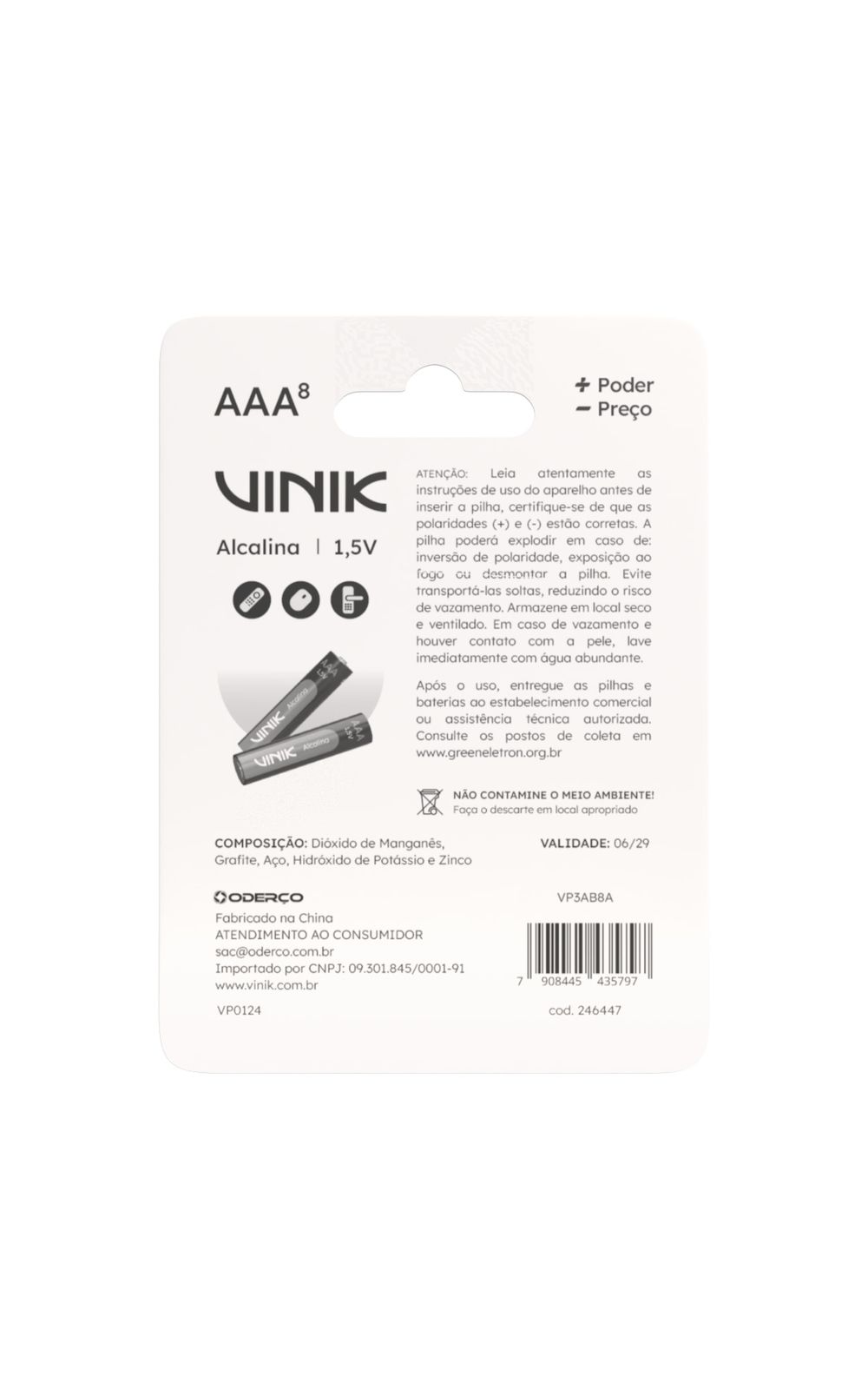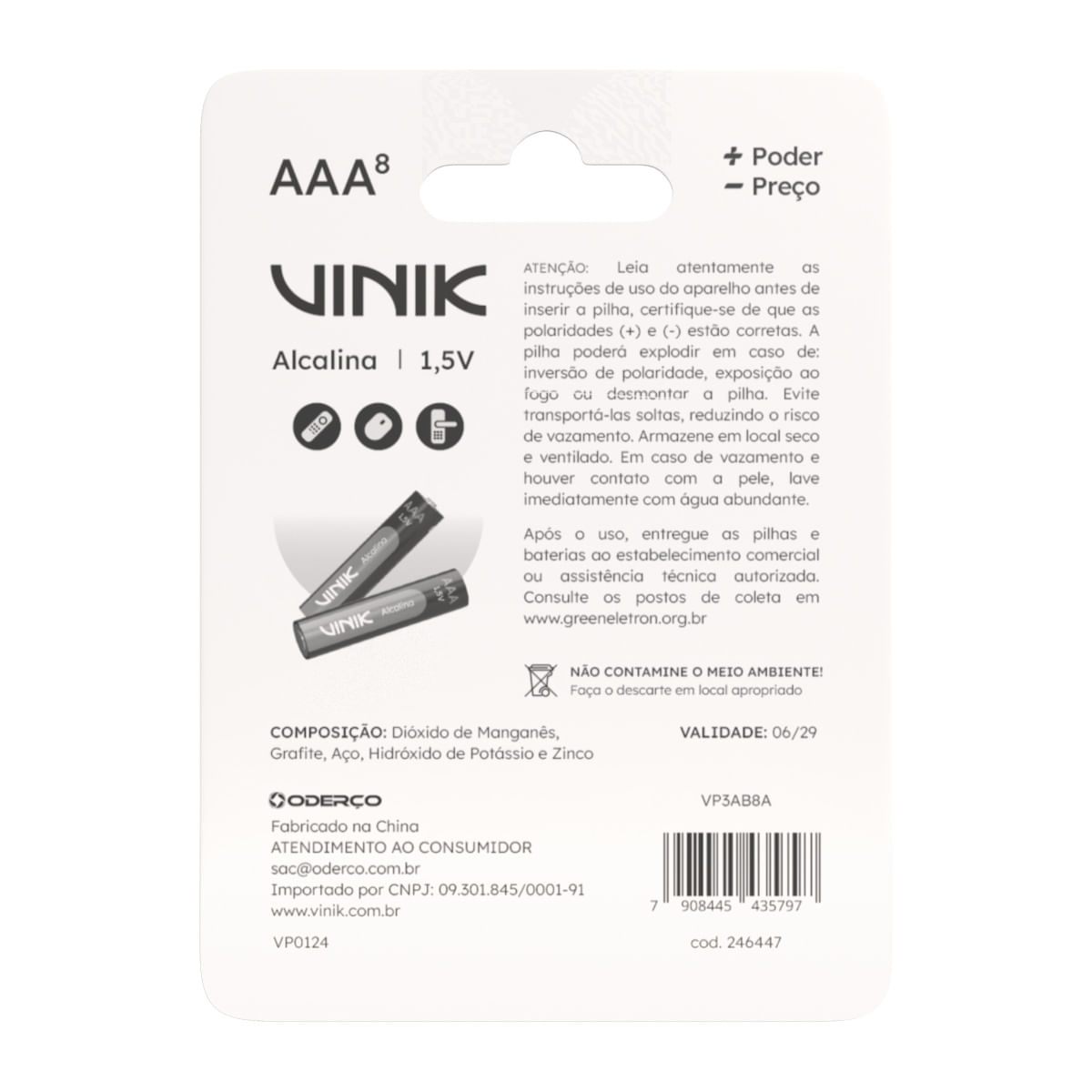 A Pilha Alcalina AAA 1.5V Vinik VP3AB8A oferece energia confiável e duradoura para seus dispositivos eletrônicos. Essencial para o dia a dia, este pacote com 8 unidades garante que você tenha sempre pilhas de reposição à mão.