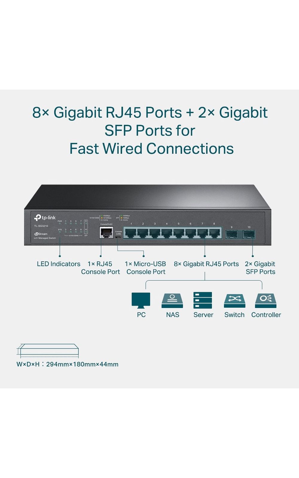 O SWITCH GERENCIAVEL GIGABIT L2+ 8 PORTAS C/ 2 SLOTS SFP JETSTREAM TL-SG3210 SMB da TP-LINK é uma solução de rede projetada para ambientes corporativos que demandam conectividade de alta velocidade e recursos avançados de gerenciamento. Este switch oferece oito portas Gi