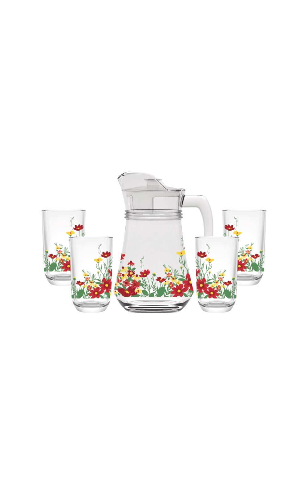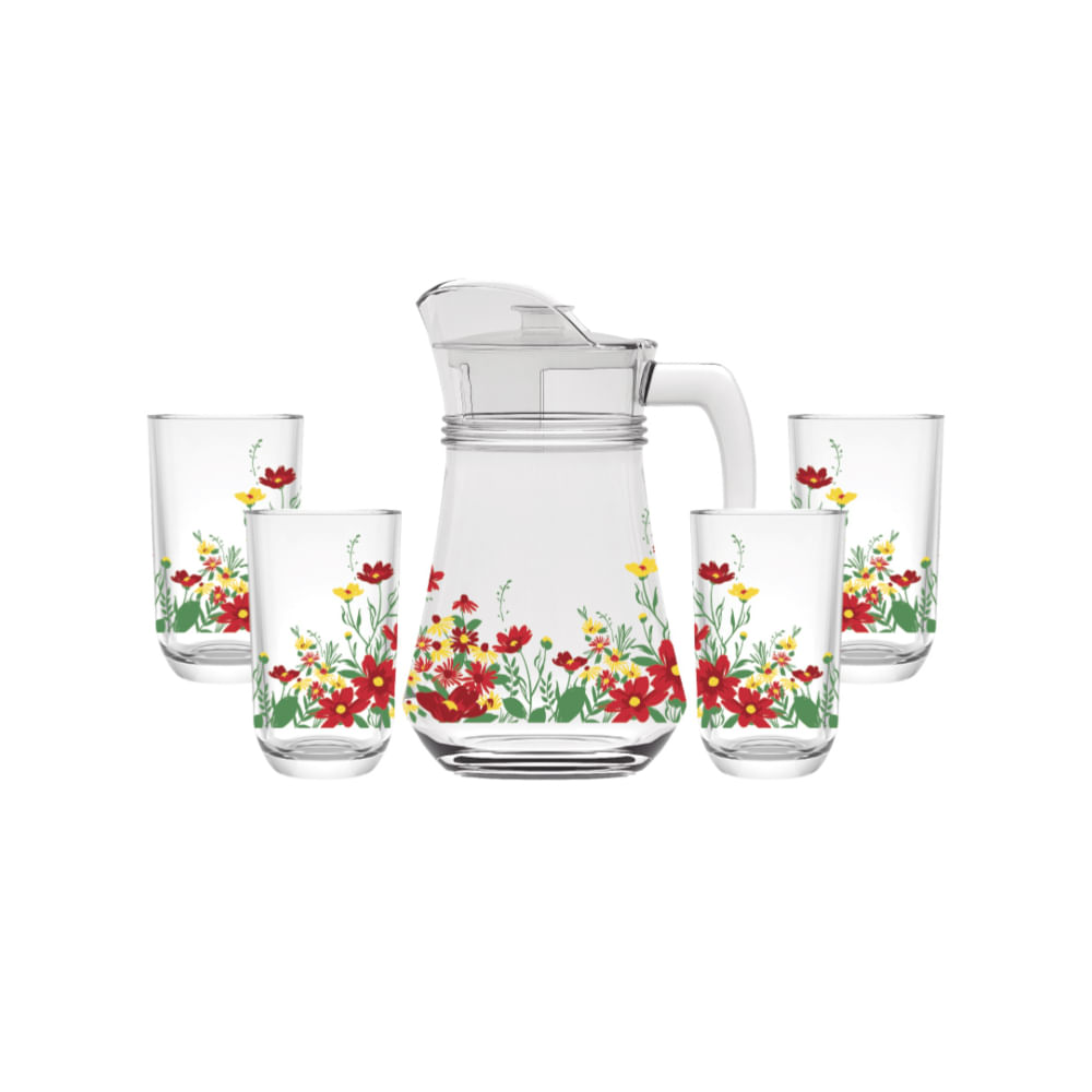 O conjunto Jarra e 4 Copos de Vidro Jardim da HAUSKRAFT é ideal para servir suas bebidas favoritas com elegância e praticidade. Projetado para complementar qualquer ambiente, este conjunto é uma adição charmosa à sua cozinha ou área de lazer. Ele resolve a necessidade de servir bebidas de forma ele
