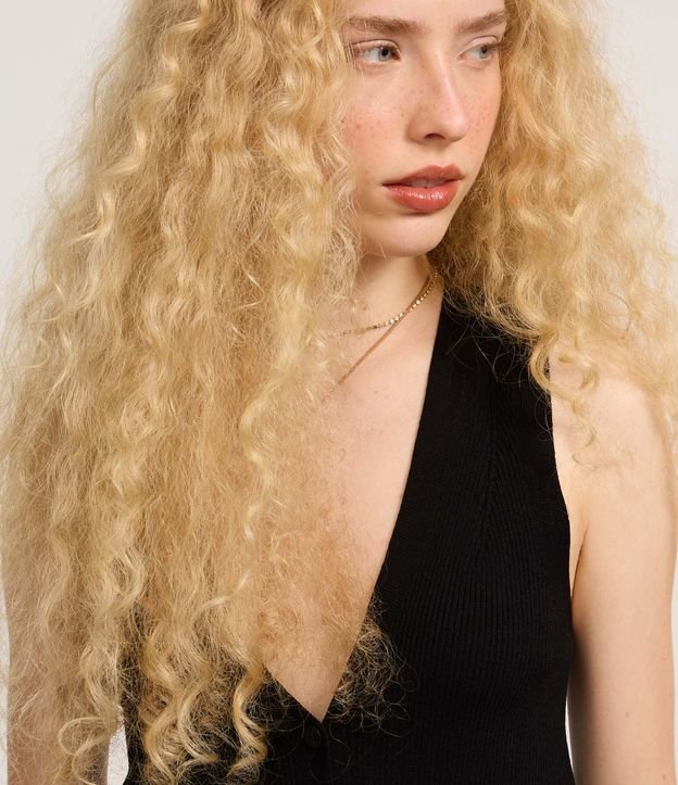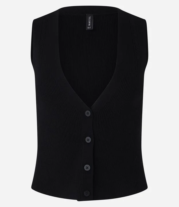Blusa colete confeccionada em tricô com viscose certificada mais sustentável, abotoamento frontal e sem estampa.