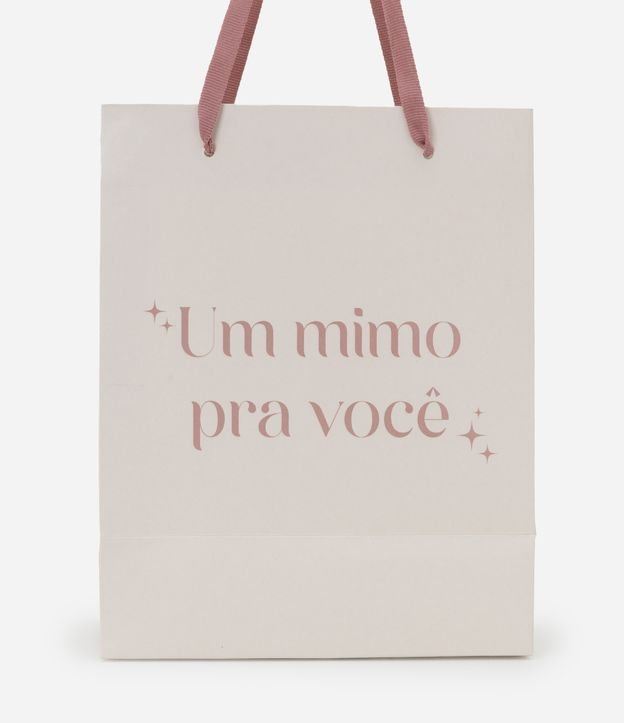 Sacola de presente pequena com alça dupla e estampa lettering com a frase um mimo pra você.