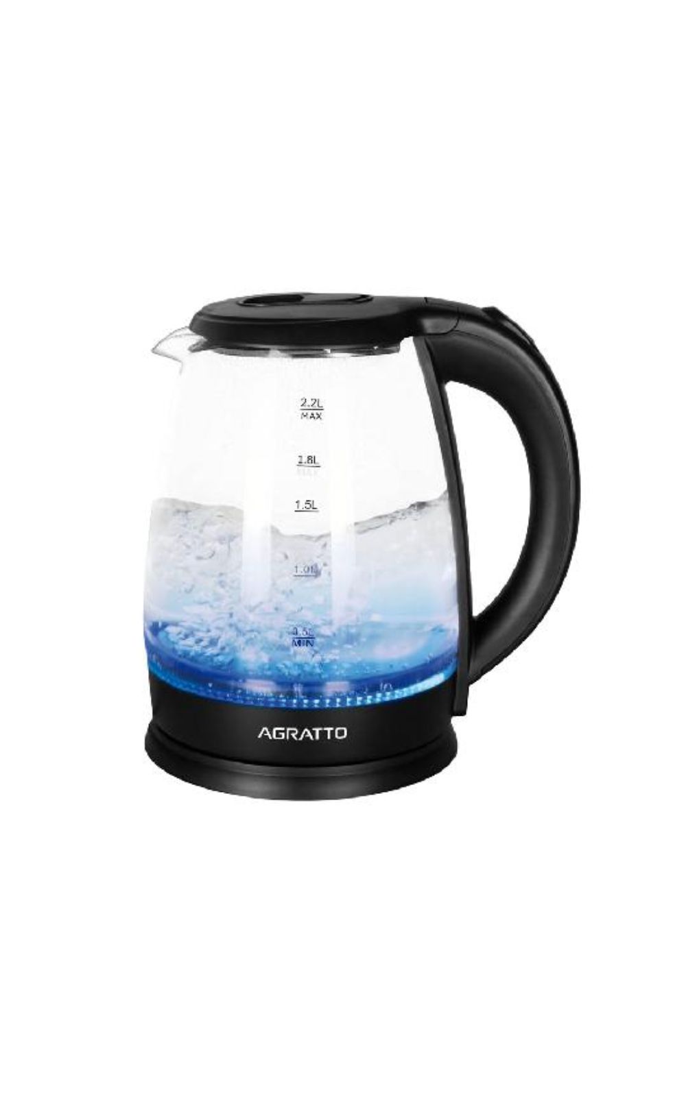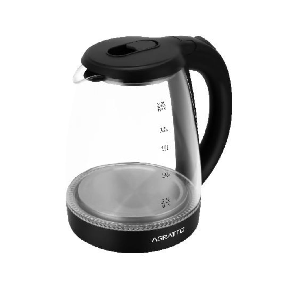 A Chaleira Elétrica Agratto Aroma de 2,2 litros e 1000W ferve água em minutos. Seu