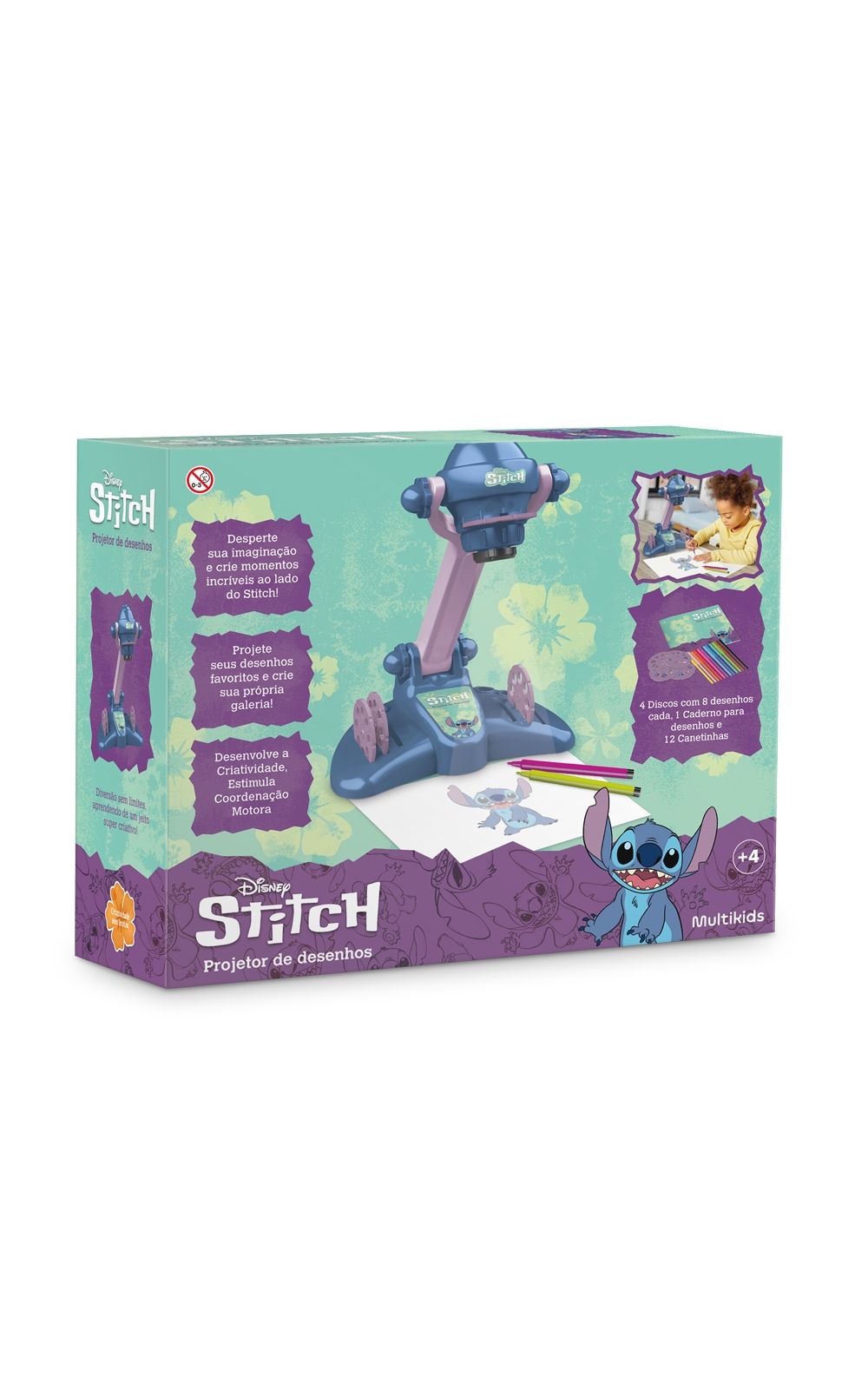 PROJETOR DE DESENHOS - STITCH! Deixe a criatividade invadir cada cantinho da brincadeira com o Projetor de Desenhos do Stitch.