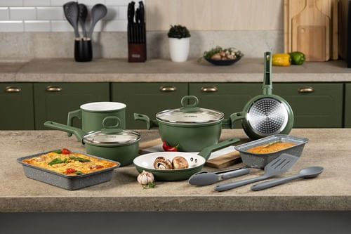 Eleve sua experiência culinária com o Conjunto de Panelas 10 Peças Neuhaus Smart Ceramic Green Matte. Desenvolvido para quem busca praticidade e alta performance, este conjunto antiaderente cerâmico transforma o preparo de suas refeições, garantindo alimentos mais s
