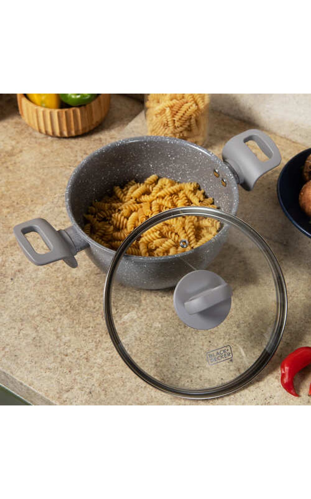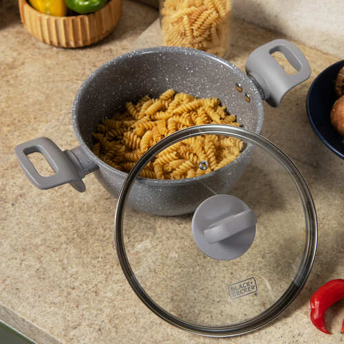 A Caçarola BLACK+DECKER Ceramic Line Grey Marble é a solução ideal para quem busca eficiência e praticidade na cozinha, resolvendo a necessidade de um cozimento uniforme e saudável. Com seu design elegante e revestimento cerâmico de alta qualidade, preparar refeições se torna uma tarefa simples e praz