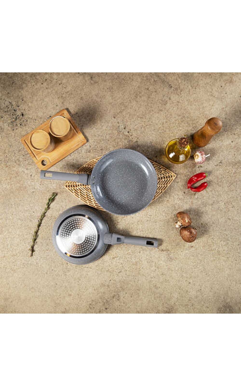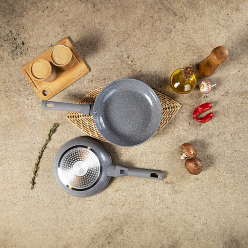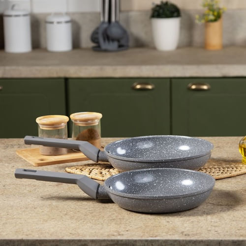 Descubra a excelência culinária com o Jogo de Frigideiras BLACK+DECKER Ceramic Line Grey Marble. Projetado para quem busca uma alimentação mais saudável e praticidade no dia a dia, este conjunto de 2 peças (18 cm e 22 cm) oferece uma experiência de cozimento superior, garantindo