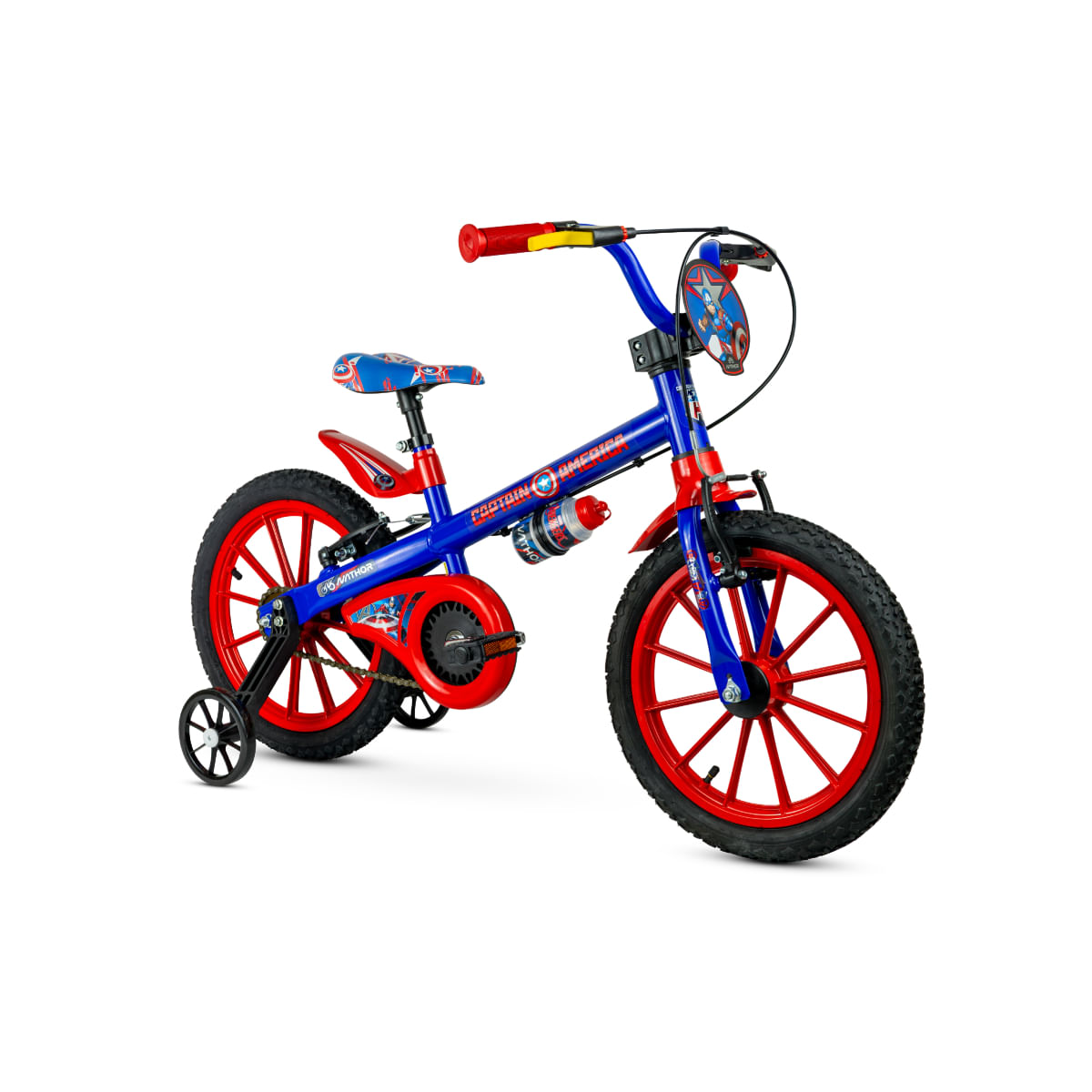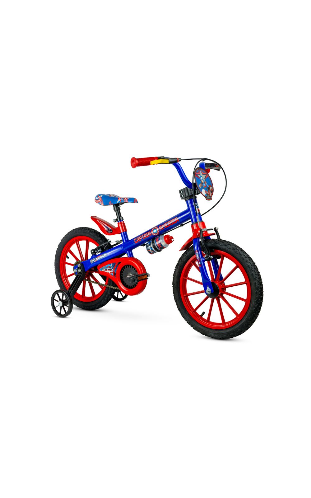 A Bicicleta Infantil Aro 16 - Capitão América - Marvel - Nathor é desenvolvida para crianças a partir de 5 anos, com altura entre 110 e 120 cm e peso de