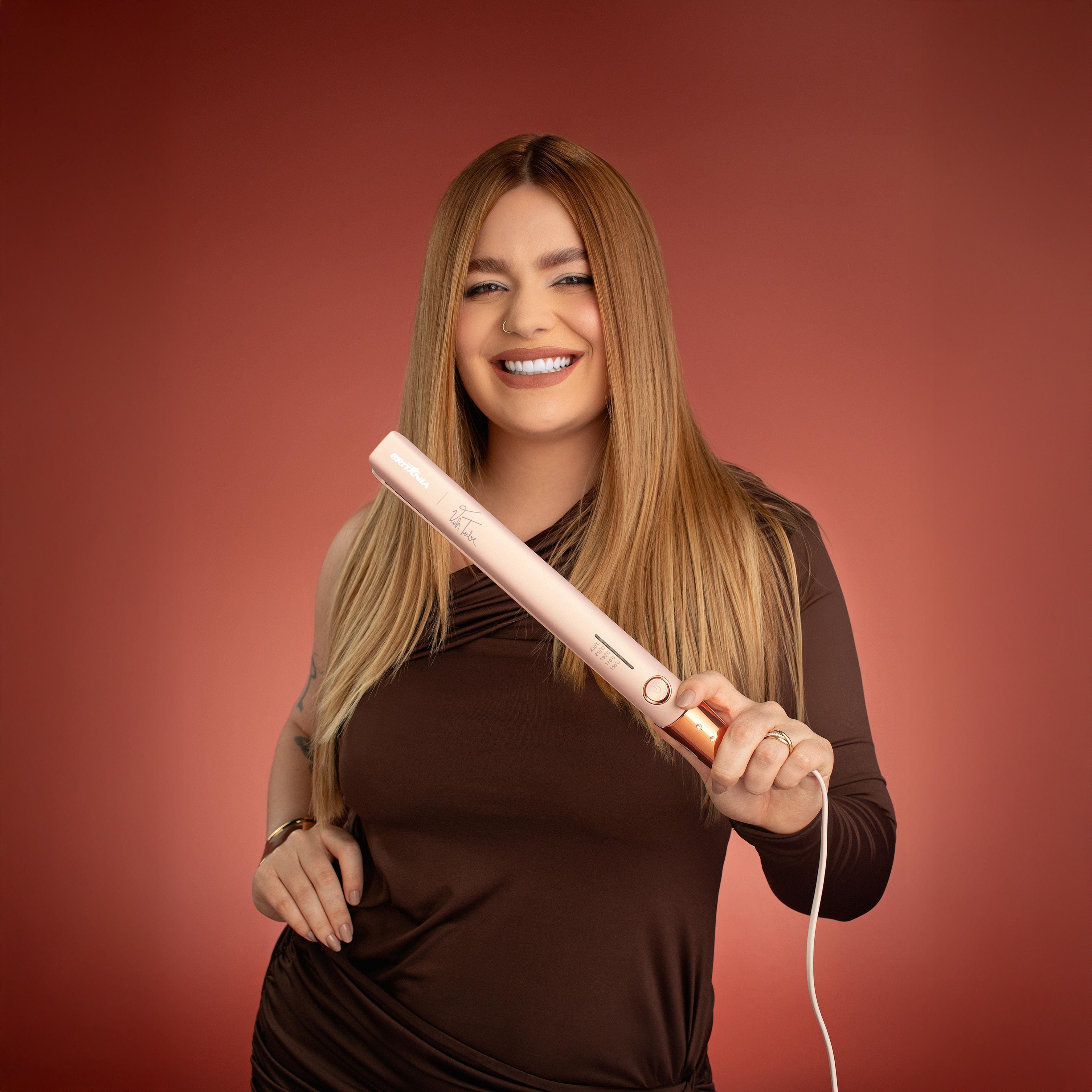 Conquiste um visual impecável diariamente com a nova Prancha Britânia Linha Viih Tube. Desenvolvida com chapas de Titanium, ela oferece um deslizamento suave e aquecimento uniforme para um alisamento profissional de longa duração, resistente até à umidade.