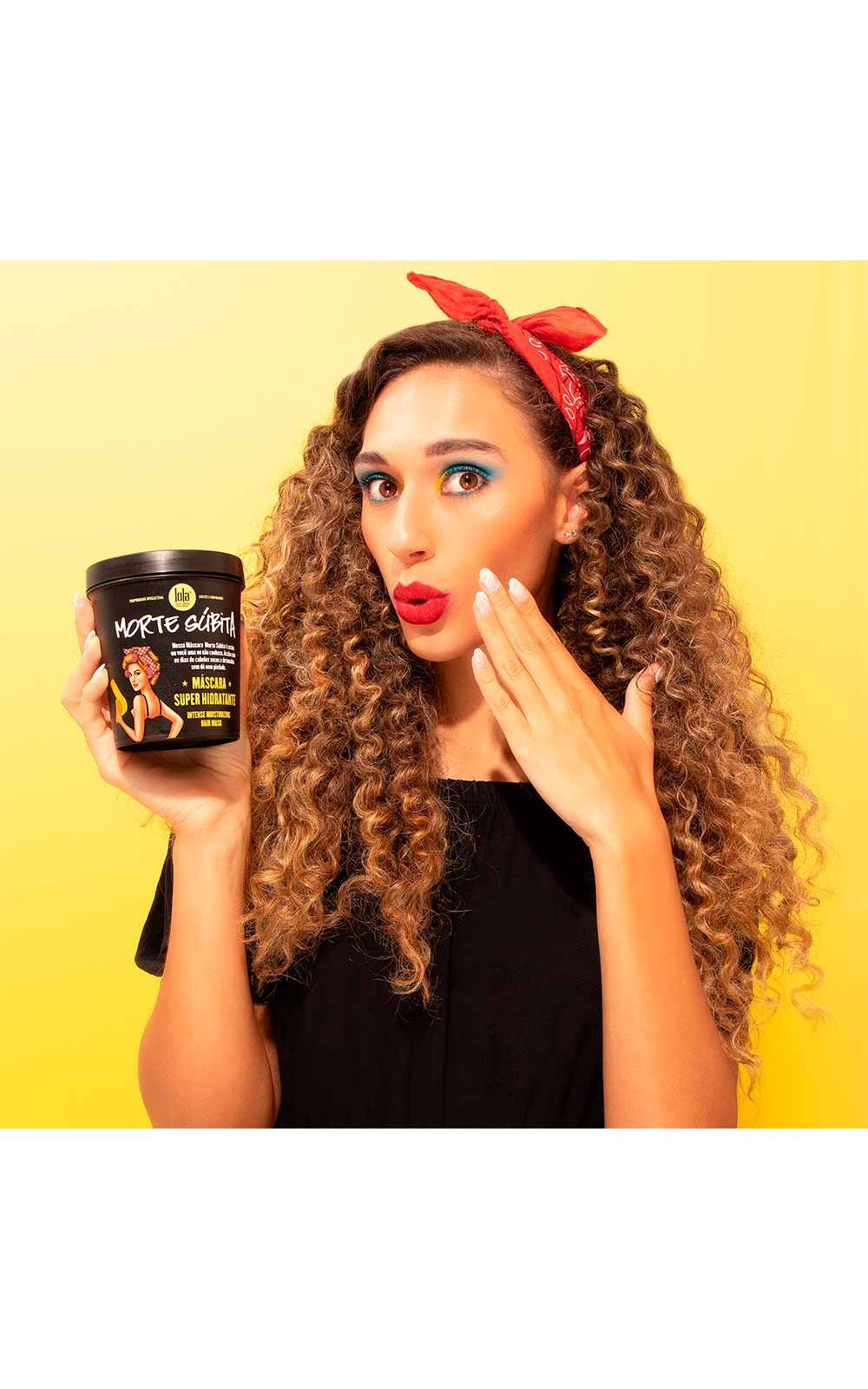 A Máscara Morte Súbita da Lola é assim: ou você ama ou não conhece! Penetra nos fios sem pedir licença, acabando com os dias de cabelos secos e detonados sem ter dó nem piedade!