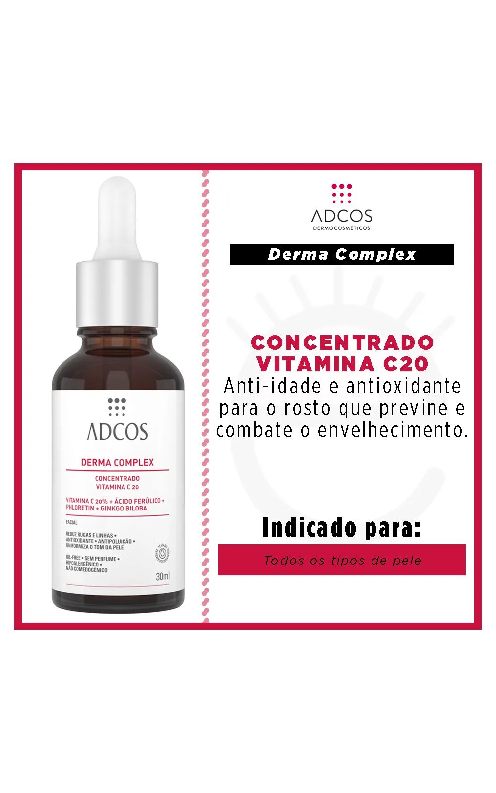 É um anti-idade e antioxidante para o rosto com Vitamina C concentrada (20%) que previne e combate o envelhecimento, uniformizando o tom da pele. Possui uma potente e exclusiva combinação de 8 ativos antioxidantes para ultra ação rejuvenescedora da pele.