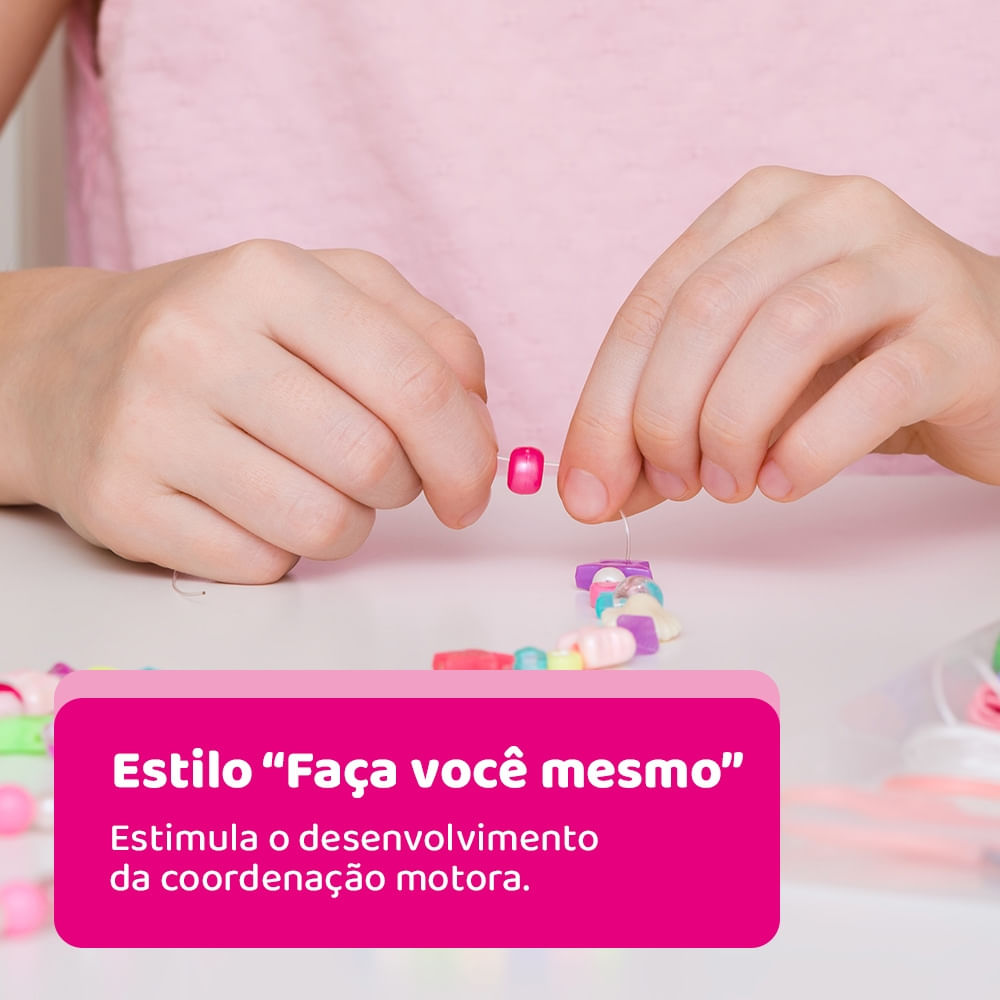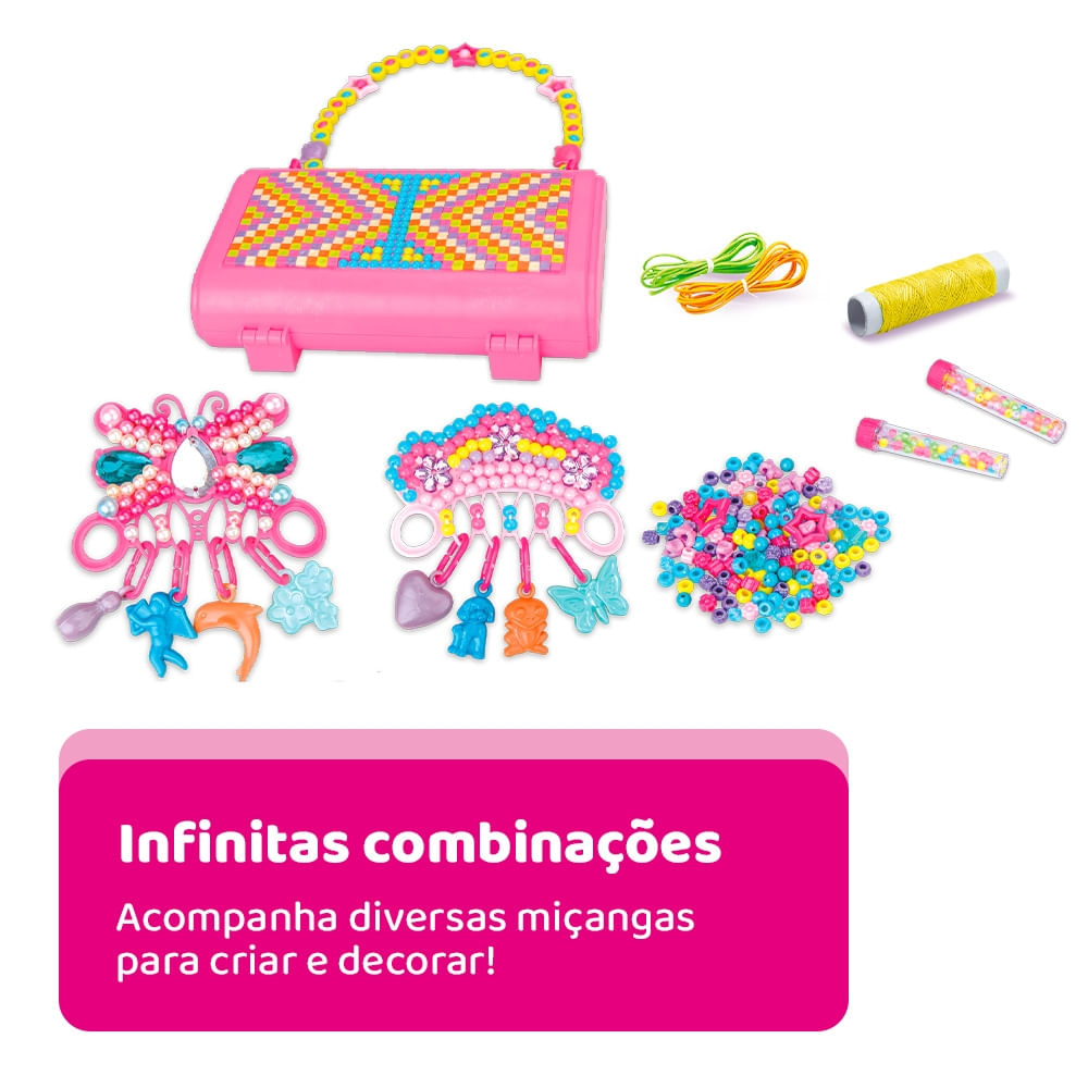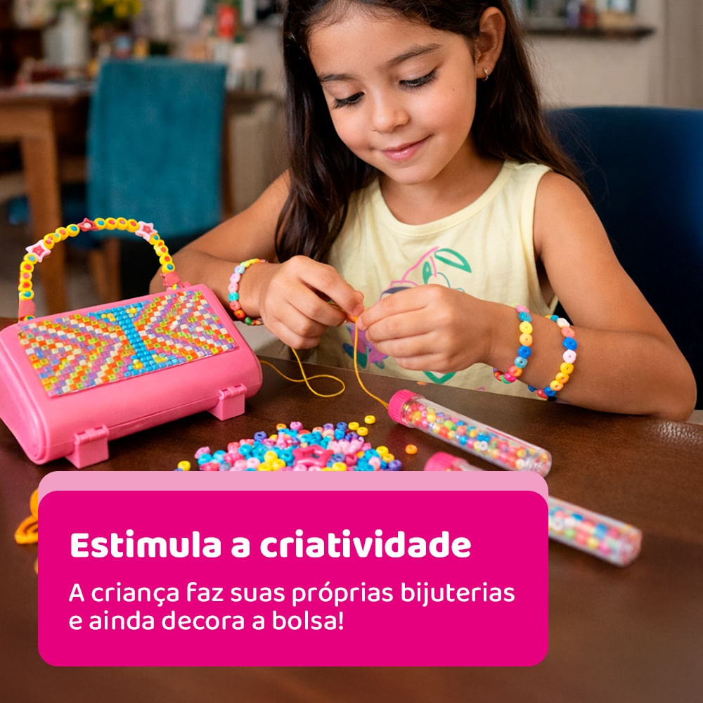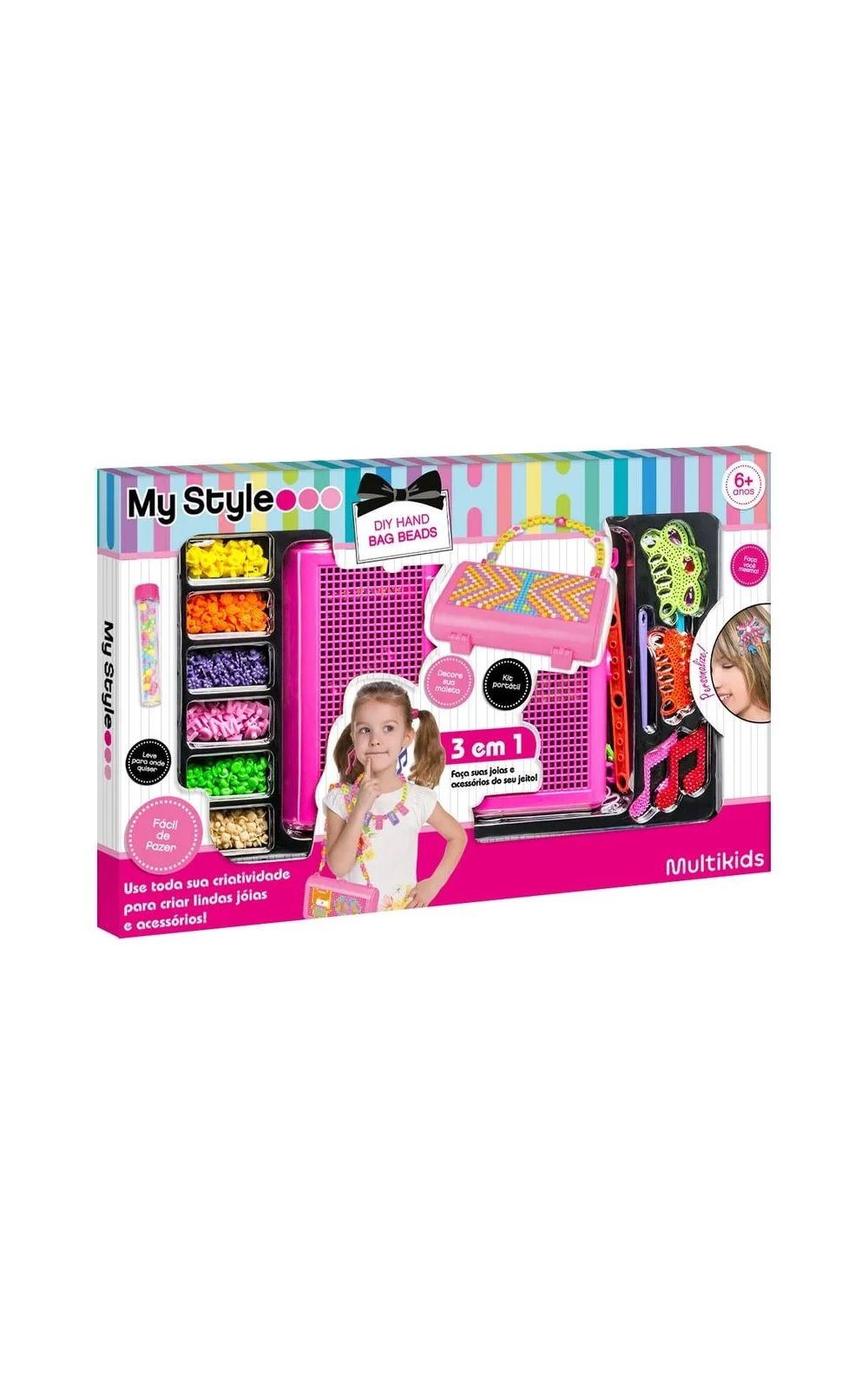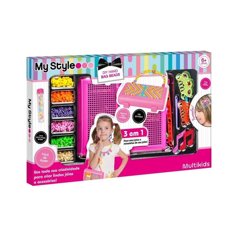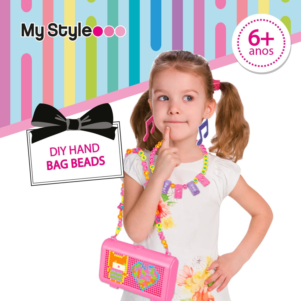 Fácil de montar e criar suas jóias do jeitinho que você quiser. Com o My Style Diy Hand Bag Beads você pode fazer brincos, arranjos, colares, enfeites e decorar sua própria bolsa com as miçangas. Use toda a sua criatividade!