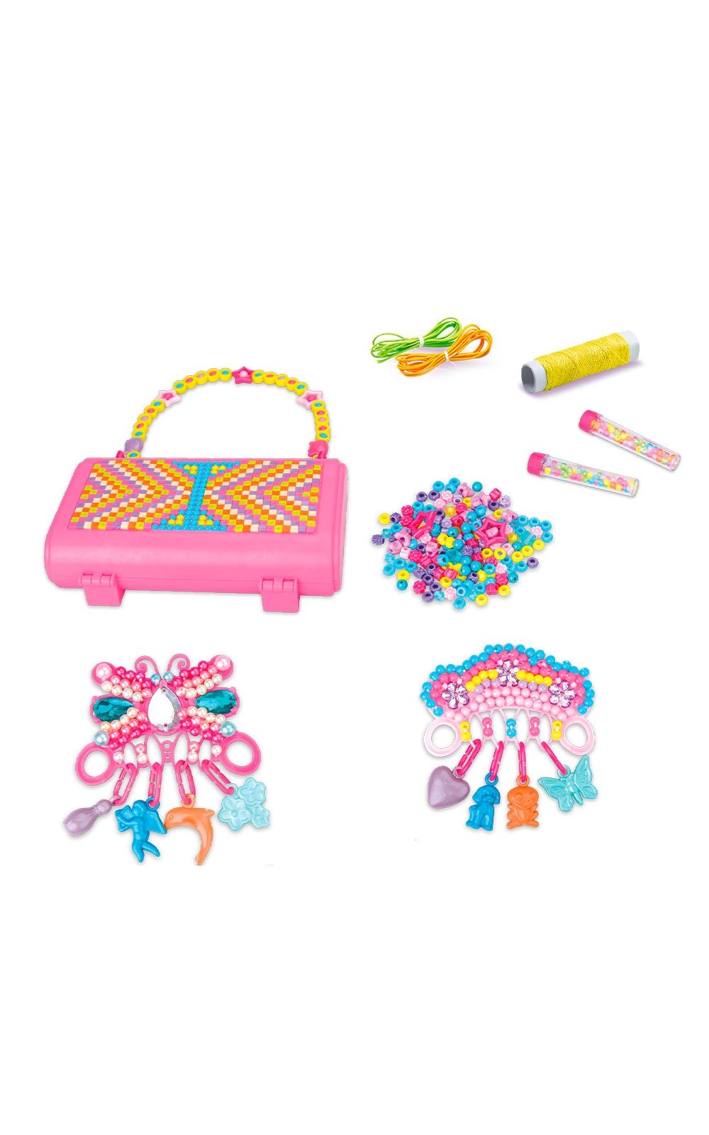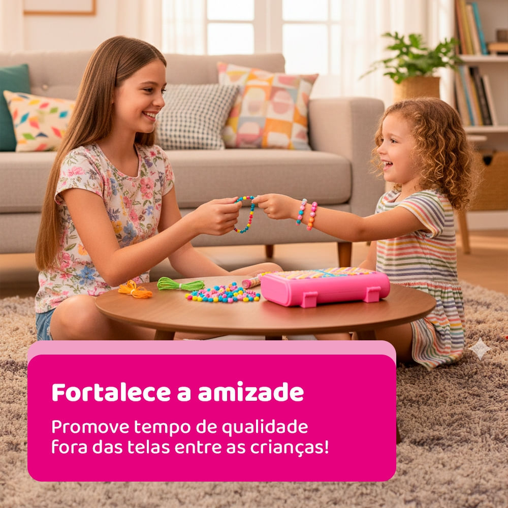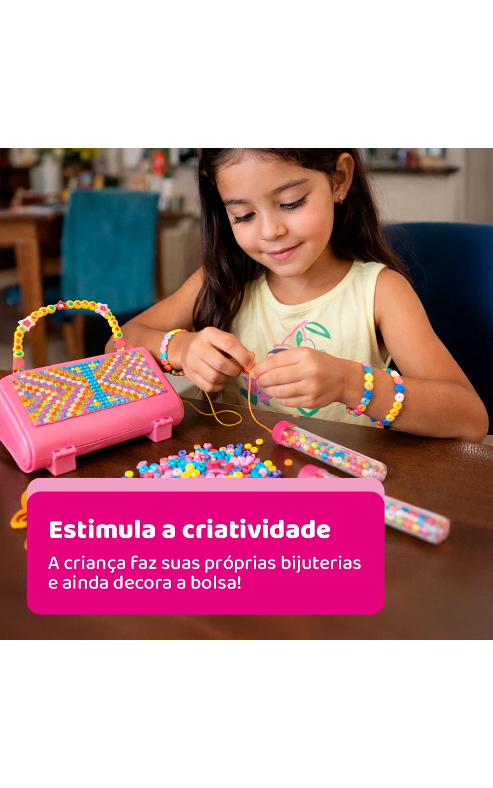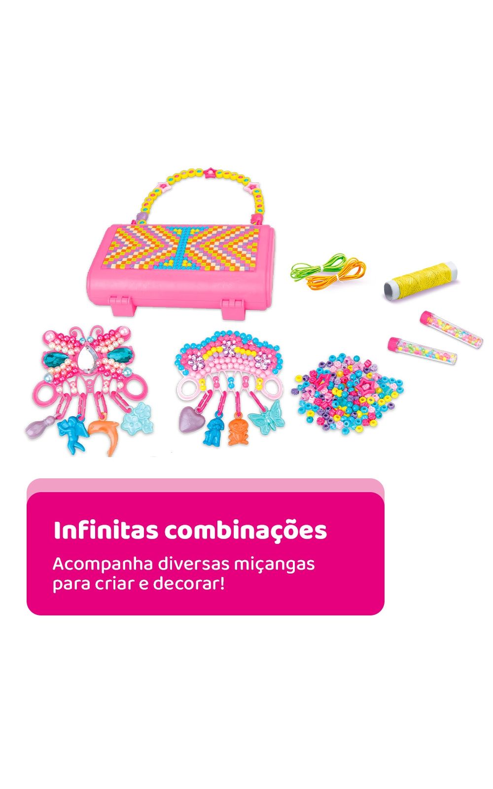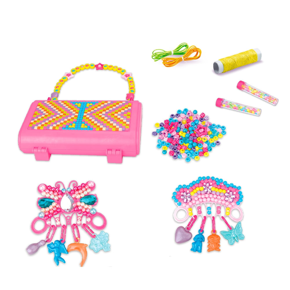 Fácil de montar e criar suas jóias do jeitinho que você quiser. Com o My Style Diy Hand Bag Beads você pode fazer brincos, arranjos, colares, enfeites e decorar sua própria bolsa com as miçangas. Use toda a sua criatividade!