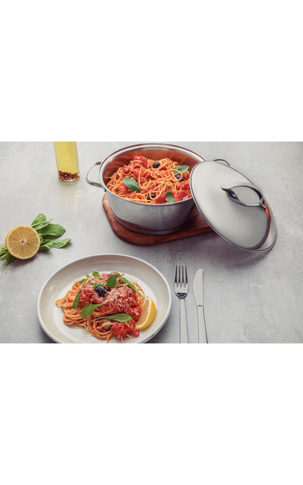 Economiza tempo e energia: o segredo está no fundo triplo (aço inox + alumínio + aço inox), que distribui o calor uniformemente, proporcionando um cozimento mais rápido. Por isso, você pode manter o fogo baixo durante todo o preparo e, assim, poupar energia. Além disso, a caçarola toda em aço inox pode ir ao forno para gratinar ou finalizar pratos, na temperatura máxima de 260°C.