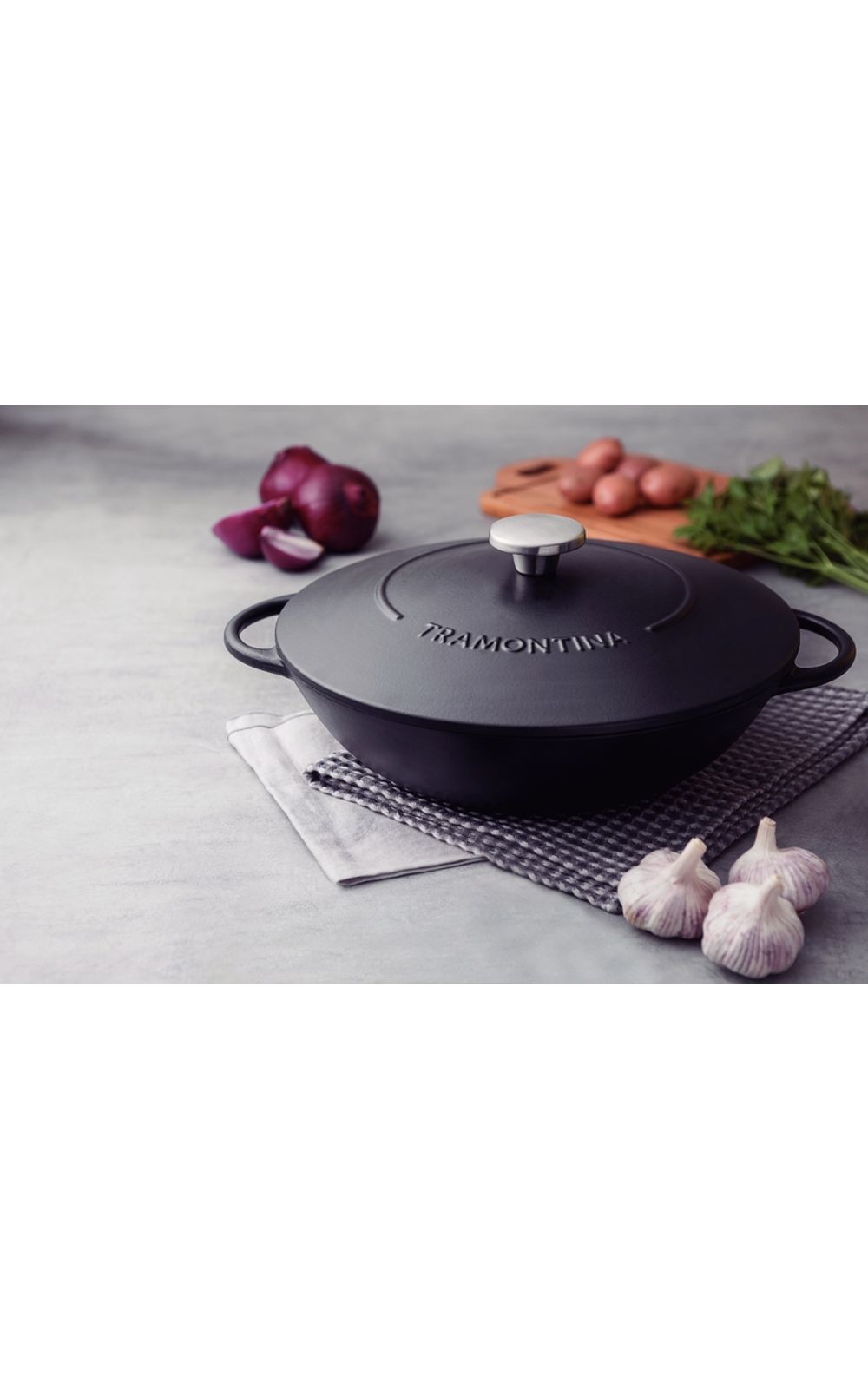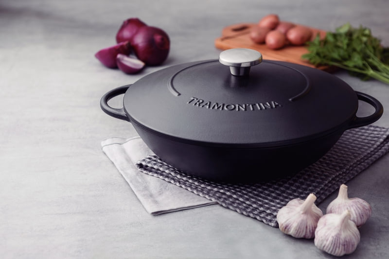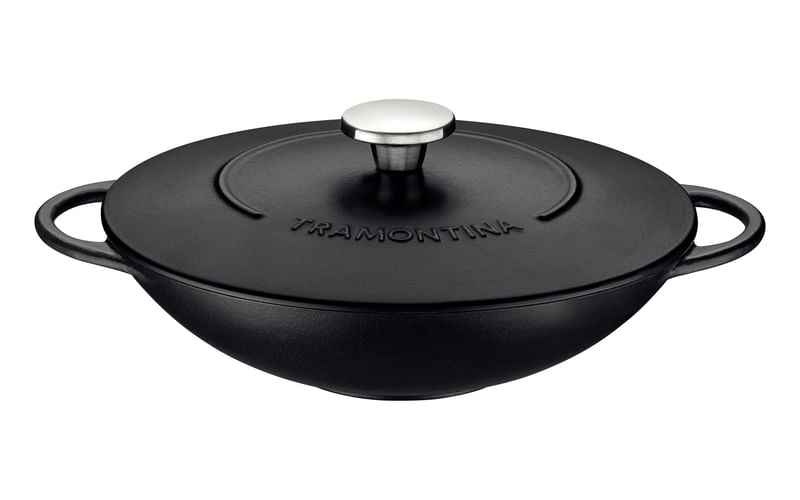 Preparar aquelas iscas de carne com sabor caseiro inesquecível fica muito mais fácil com a wok Tramontina Trento em ferro esmaltado com revestimento interno em antiaderente Starflon Excellent 32 centímetros 5 litros. Com ela, você cozinha os alimentos de maneira rápida e uniforme e ainda evita que eles grudem em sua superfície, pois é produzida em ferro fundido esmaltado com revestimento interno em antiaderente Starflon Excellent. É a clássica panela de ferro com a praticidade do antiaderente. Ela ainda é uma wok muito versátil, pois pode ir em diversos tipos de fogão e ir ao forno para gratinar suas receitas!