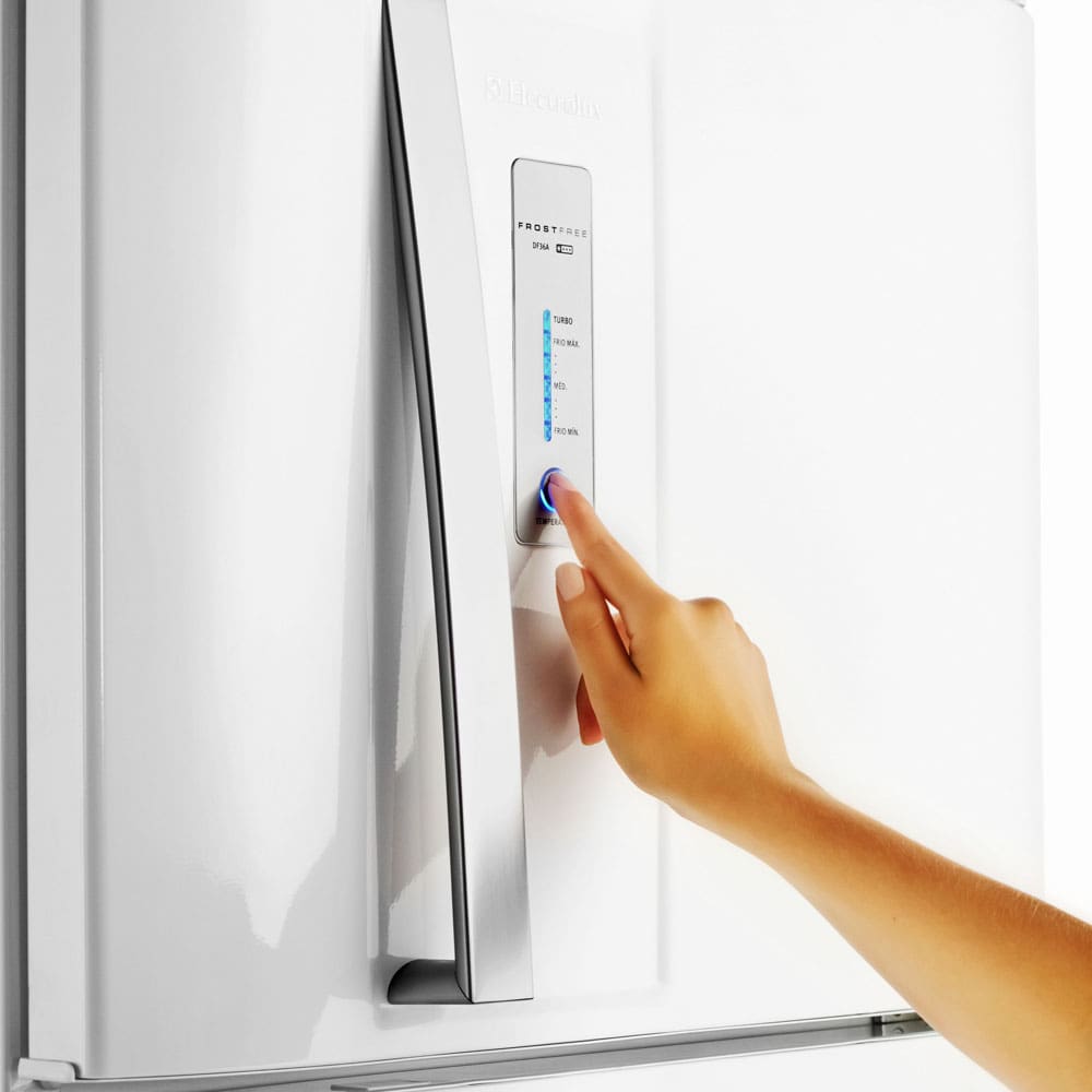 Procurando um refrigerador funcional e que vai deixar a sua cozinha ainda mais bela? O DF36A, da Electrolux, é perfeito para você, um produto que possui controle de temperatura externo Blue Touch, mais facilidade para controlar a temperatura do refrigerador. Vem com prateleiras em vidro 100% removíveis, que permite uma limpeza mais profunda e otimização de espaço, o gavetão de frutas e legumes transparente melhora a organização e visualização, e a prateleira do freezer é retrátil com três posições, ela pode ser utilizada em como prateleira inteira, meia prateleira e totalmente retraída, com amplo espaço. Conta com compartimento para alimentos frescos, cesta porta-ovos removível, duas formas de gelo suspensas, uma prateleira na porta do freezer, turbo congelamento, que congela rápido os alimentos, trava-garrafas aproveitável e sistema Multiflow, garante melhor preservação dos alimentos. E mais, é Frost Free, ou seja, não precisa descongelar nunca!