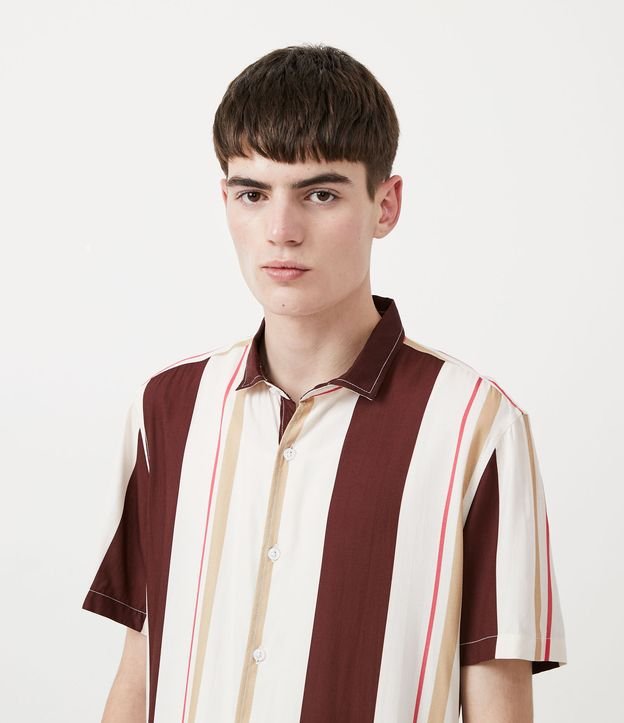 Camisa manga curta em viscose com estampa em listras irregulares. Peça leve e super confortável, ideal para você que busca o complemento perfeito para as suas combinações casuais.