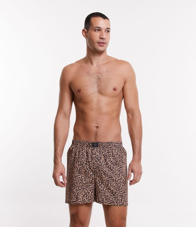 Cueca samba canção com cintura elástica e estampa animal print de oncinha.