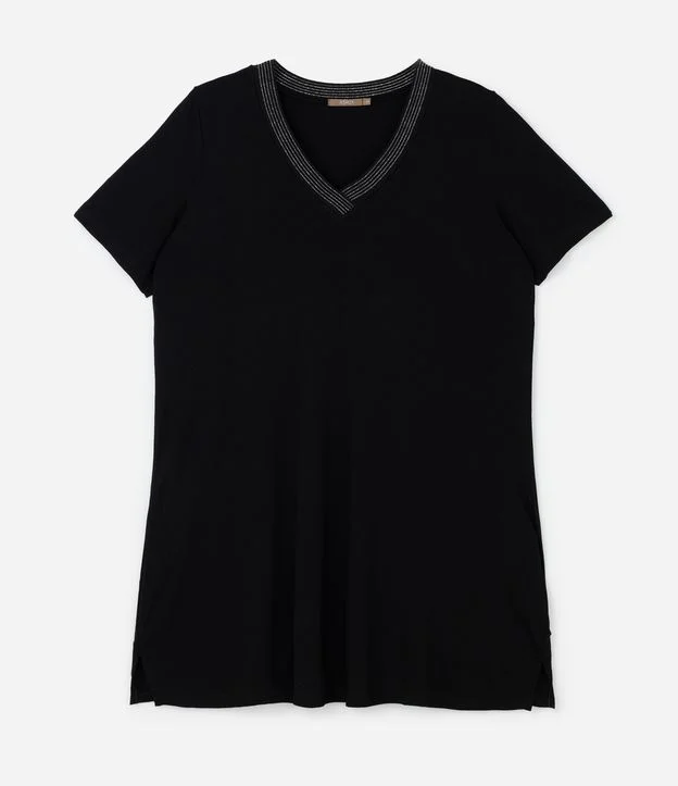 Vestido curto confeccionado em visco crepe sem estampa. A peça tem decote V em retilinea e mangas curtas.
