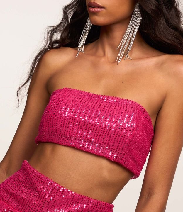 Blusa cropped, tomara que caia confeccionada em paetês metalizados e com forro.