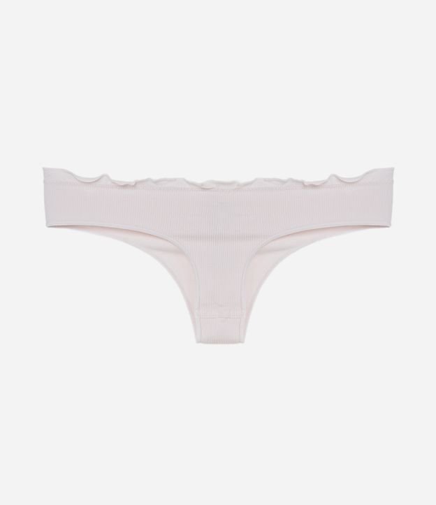 Peça avulsa de lingerie confeccionada em poliamida sem estampa e com acabamento seamless. A calcinha modelo biquíni fio tem bordas frufru (onduladinhas) e aplicação de topinho contrastante.