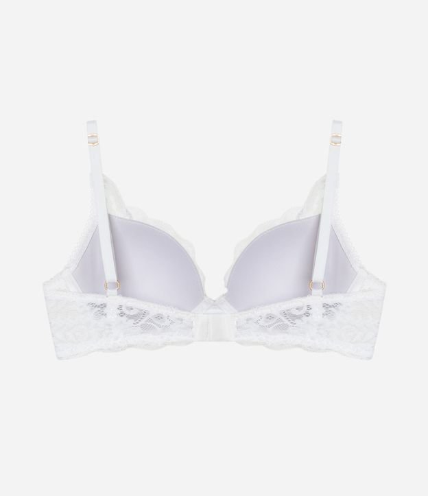 Peça avulsa de lingerie confeccionada em renda com textura floral. O sutiã modelo base tem alças reguláveis e bojo oco.