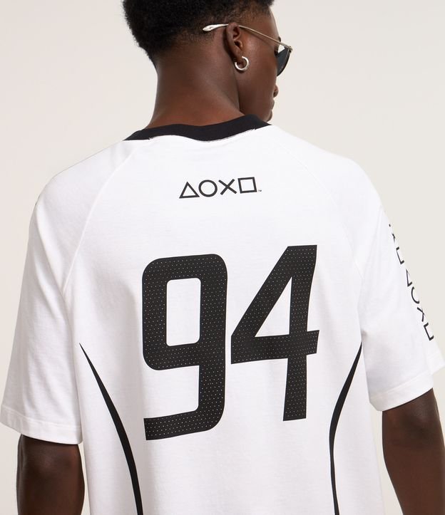 Camiseta masculina confeccionada em algodão mais sustentável, no modelo comfort sportcore com gola redonda e manga curta. Peça com estampa lettering em homenagem a marca playstation.