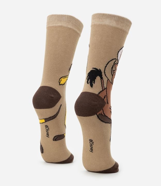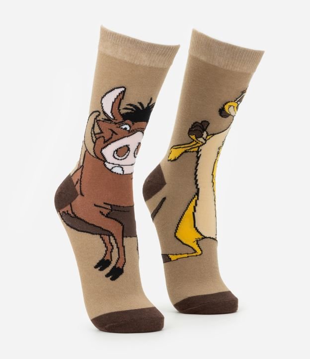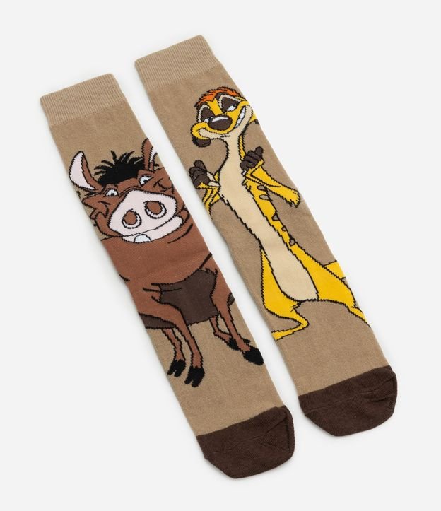 Meia confeccionada em algodão mais sustentável com boas práticas ambientais. Peça modelo cano longo com estampa da dupla mais carismática do reino Timão e Pumba.