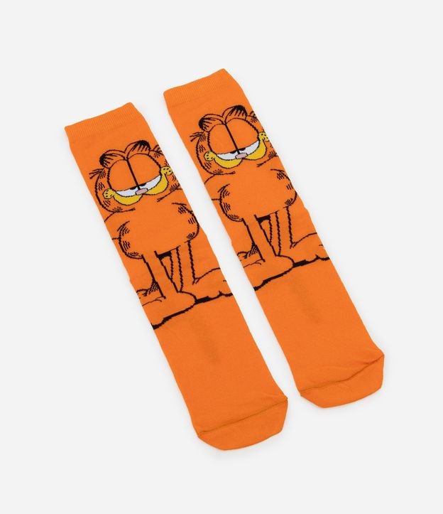 Meia cano longo em algodão com estampa do Garfield.