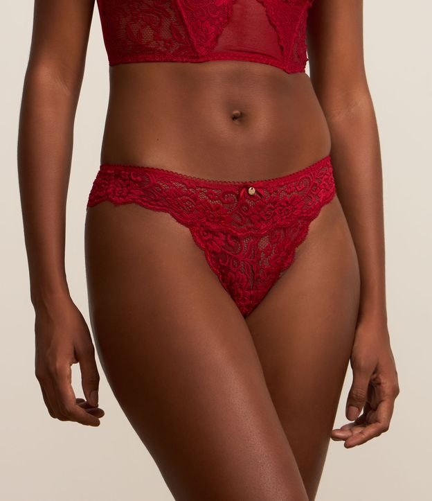 Calcinha biquíni fio em renda floral e lateral média.