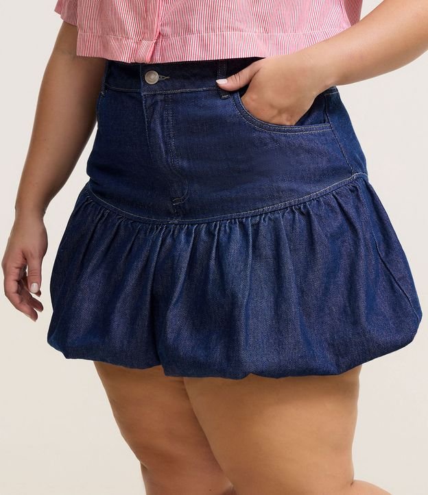 Saia feminina Curve & Plus Size confeccionada com material mais sustentável em boas práticas ambientais, com cós fixo, passantes e fechamento tradicional. Peça curta no modelo balonê com detalhe de pala, bolsos e ajuste interno para garantir maior conforto.