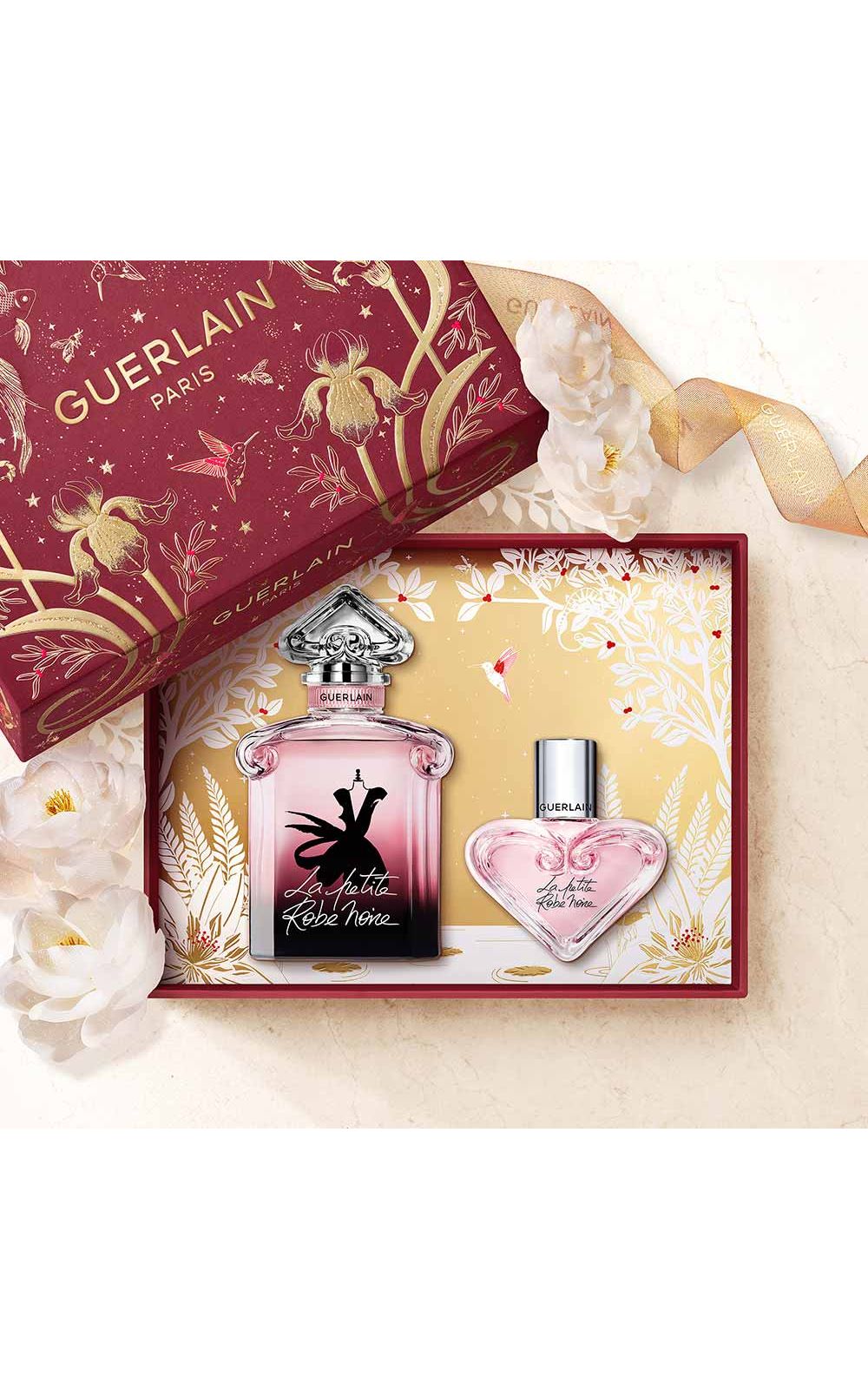 Os kits Guerlain vestem-se com um novo design exclusivo em vermelho profundo, adornado com delicado