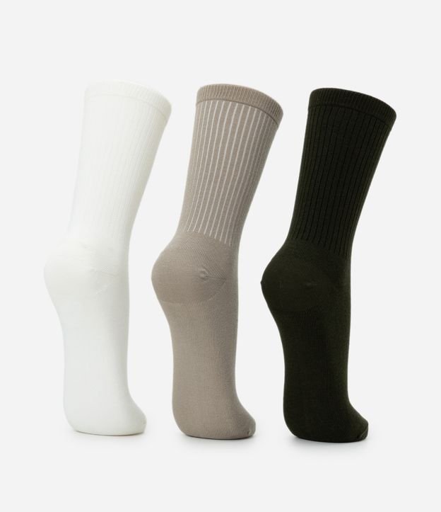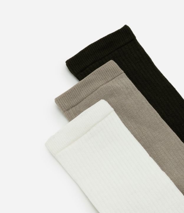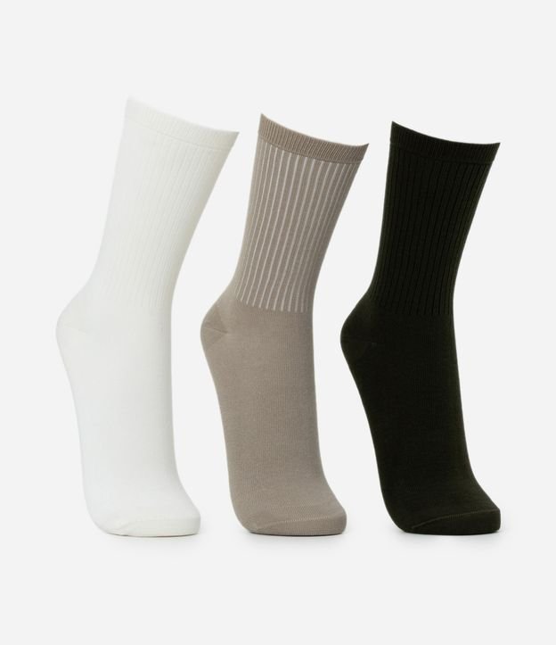 Kit com 03 pares de meia confeccionado em algodão mais sustentável. Possui modelo cano alto, textura canelada e básicas.