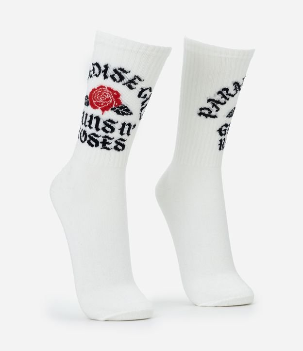 Meia cano longo em algodão com estampa Paradise City do Guns n' Roses.